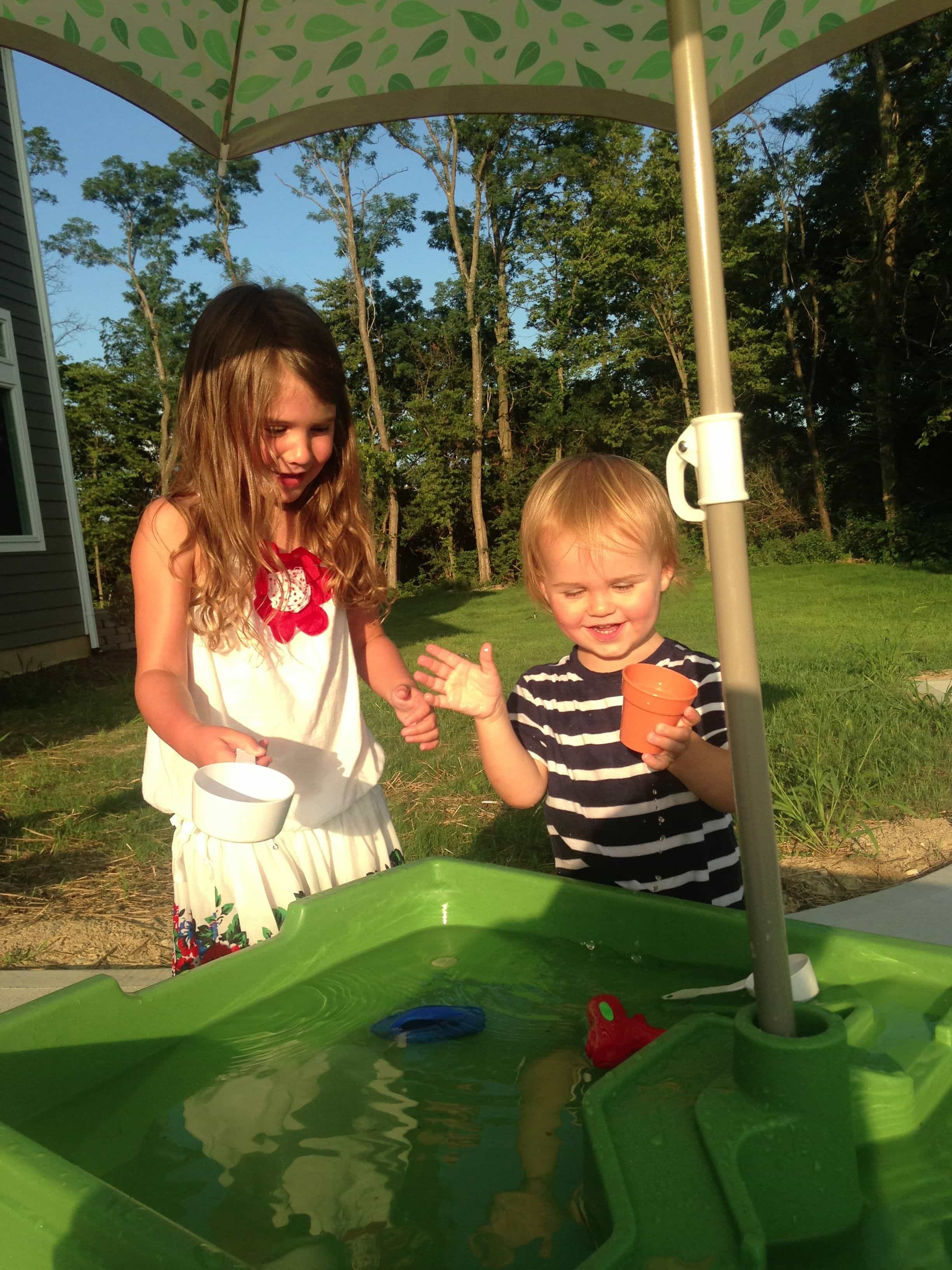 This is such a versatile table that both kids have loved! This was a gift for Luke, but Meghan enjoyed playing with it just as much as Luke. In the cooler months, we used this as a sand table and in the warmer months as a water table. Â I never combined the two because I thought it would turn the sand to mud–no thanks. This table can also be brought inside during the winter and used as a sensory table by adding dried beans, rice, etc. Â The possibilities are endless and it’s been a favorite gift for sure.