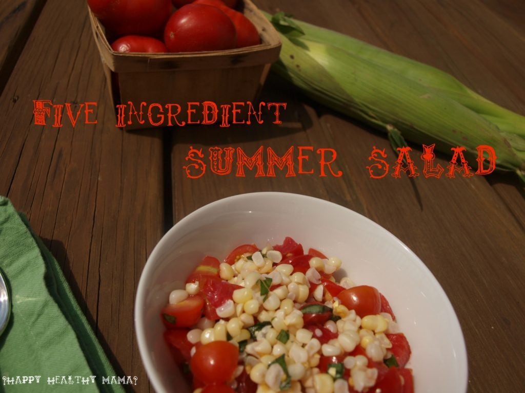 If you are stuck in a place where it’s so hot you don’t want to spend more than a few minutes in the kitchen, try this quick summer salad. Only 5 ingredients and it takes advantage of the fresh summer flavors of sweet corn, tomatoes, and basil.