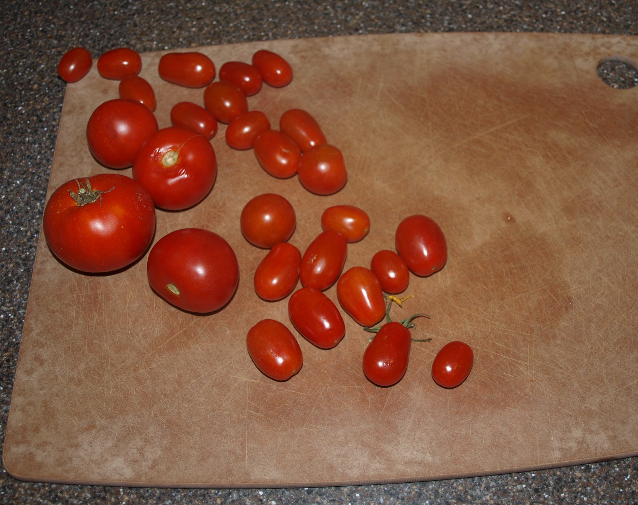 - 2 cups grape tomatoes, halved or quartered, depending on size (You can use regular tomatoes, too, you’ll just want to core and seed them first)