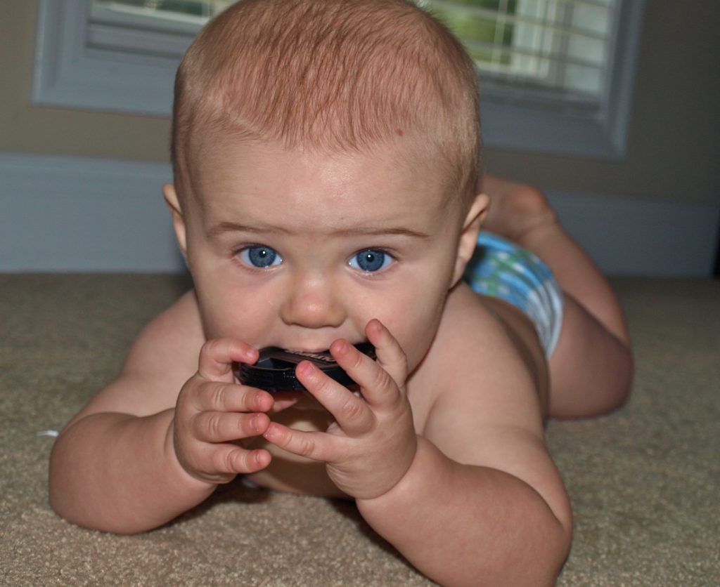 He also is ready to crawl. He gets up on all fours and rocks back and forth, but doesn’t have the movement down yet.