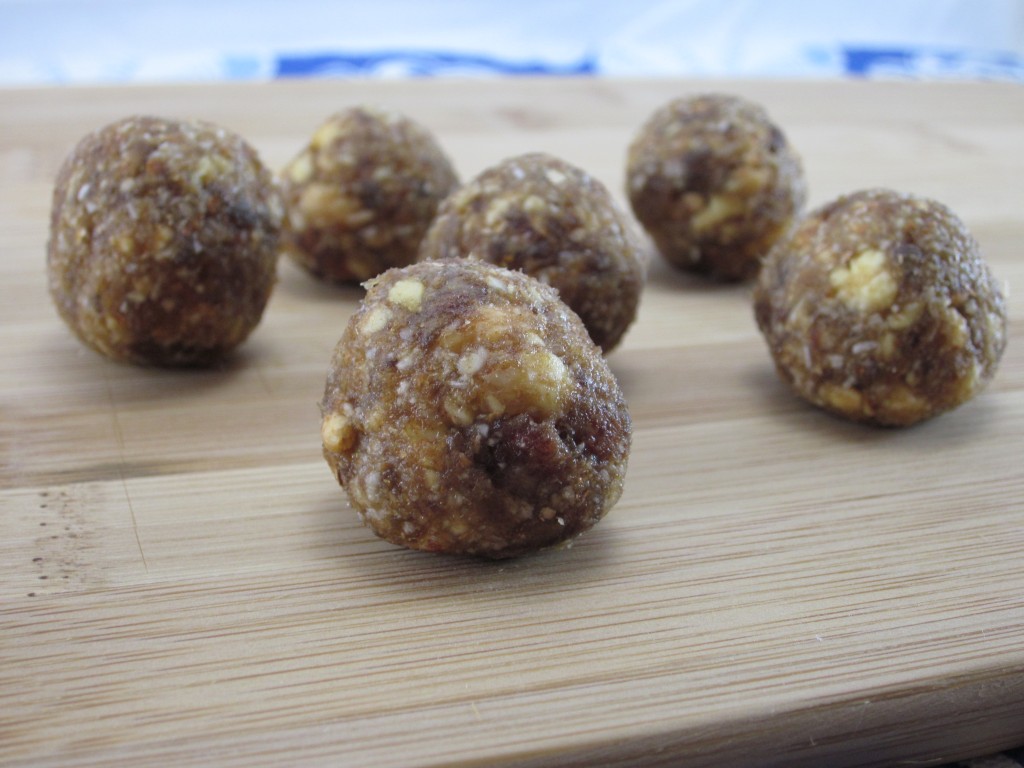 - The mixture should come together very easily now. Form into 6 balls (about 1 tablespoon of mixture per ball). Wrap in plastic wrap and place in the fridge.