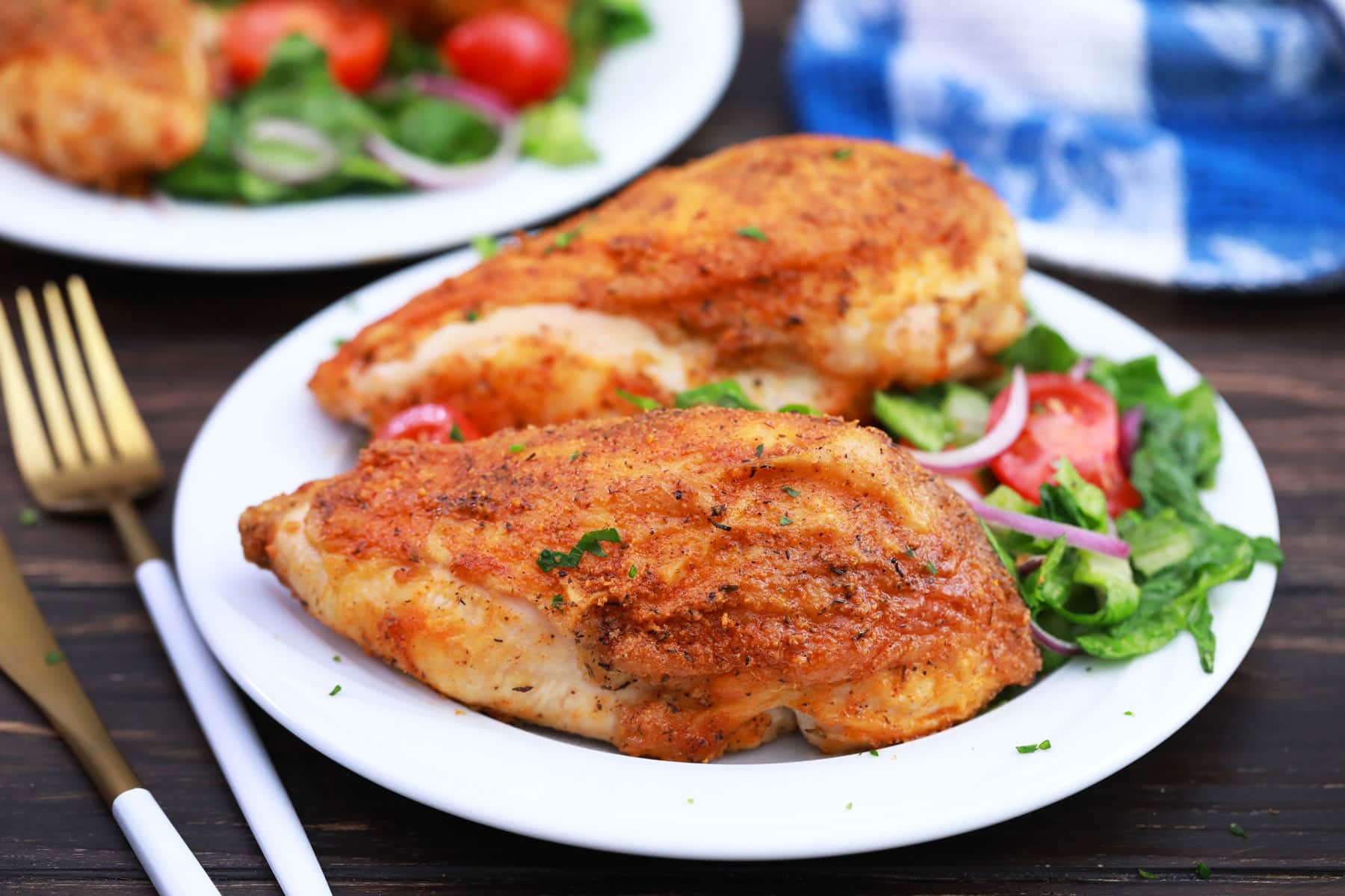It takes just a few minutes of prep time, and then you just bake it. In just a few easy steps, you have a delicious, juicy chicken breast. It would go well with Air Fryer Carrots, balsamic roasted veggies or my sweet and spicy brussels sprouts with cauliflower.