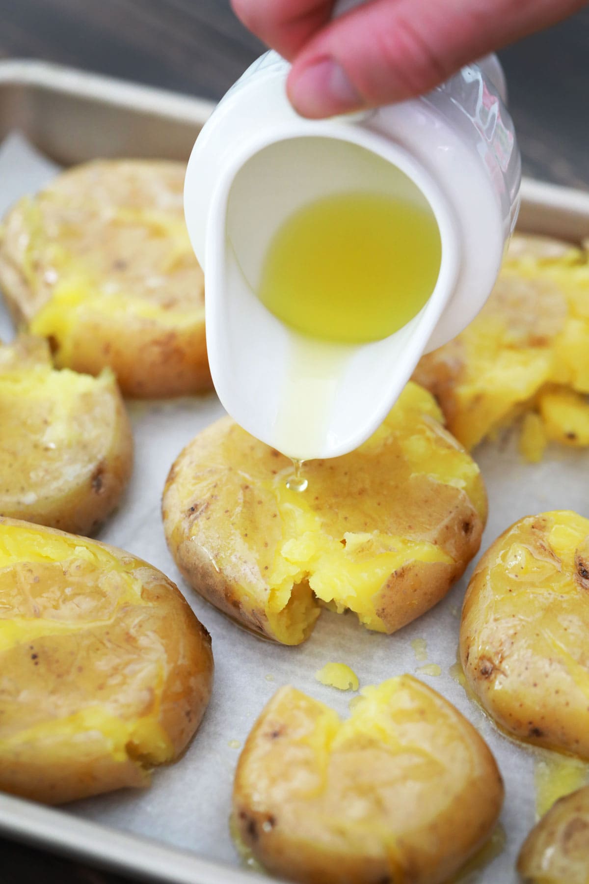 The combination of butter and oil enhances the flavor of these smashed potatoes and makes them super crispy (the best part)! You may substitute olive oil if you’d prefer, but it has a lower smoke point so I don’t recommend it.Â