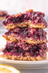 The top blueberry layer will thicken as it cools and therefore hold together better when cutting into bars. You can even refrigerate if you want to hurry the process. And they tend to taste even better the next day chilled in the fridge.