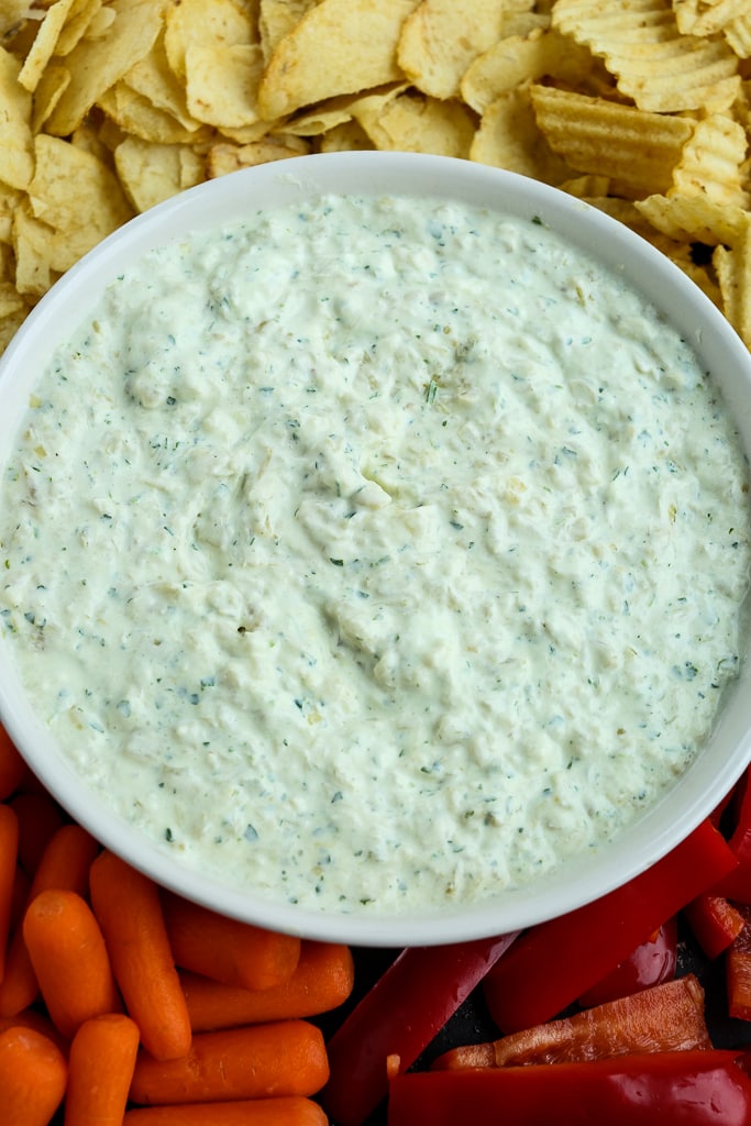 - Potato Chips: You could make homemade chips or buy your favorite variety to use. It’s just important to use chips that are strong enough to hold the dip.