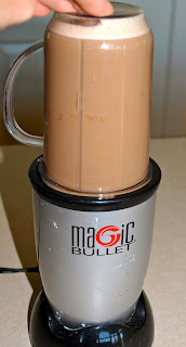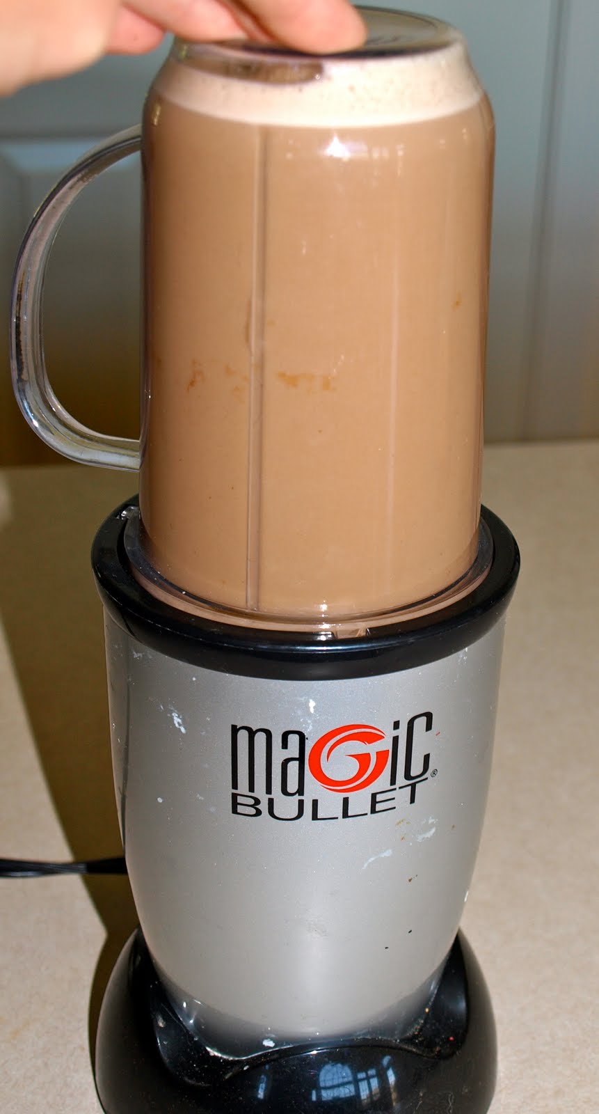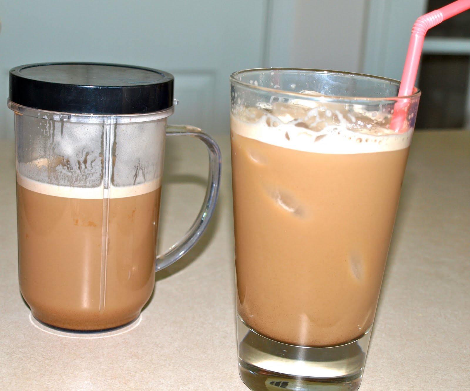 I have a confession to make: I love Starbucks. Love it. I crave their yummy coffee drinks a lot, but try to only get them occasionally. It’s that darn sugar. Grrr. Anyway, I was craving one after putting Meghan down for her nap. Since my daughter was sleeping and slipping out to Starbucks was not an option, I decide to make my own, somewhat healthier version. I wanted to make a Frappicino (sp?) style drink of blended coffee, but once I got all of my ingredients in the magic bullet, I didn’t have room for