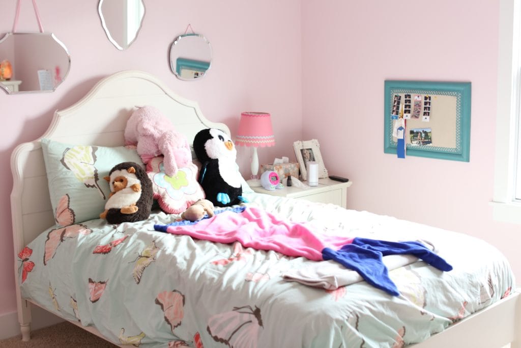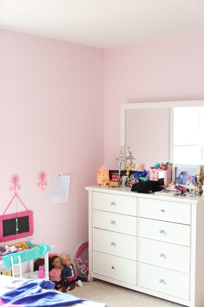 Then Daddy shot down the whole idea and said we aren’t painting any walls. Sooooo….we compromised and said we could give her room a mini-makeover and add some black accents. I convinced her that the light pink would look great with black and she insisted gold must be part of the color scheme. Here’s what her room looks like now: