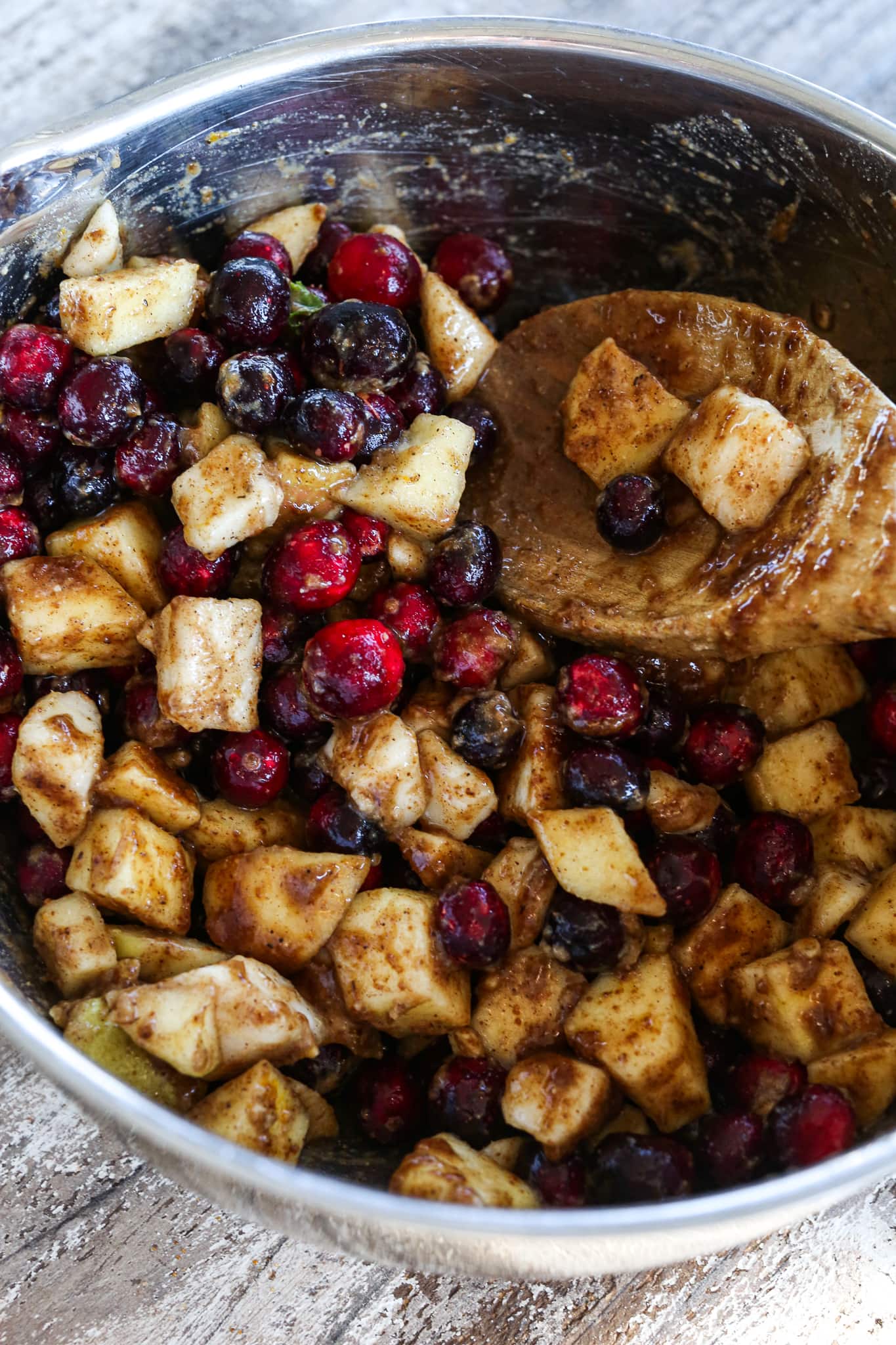 I like using Honey Crisp apples, but you can use any kind of sweet apples. I don’t think using a tart apple is best in this recipe because the sweetness of the apples (and pears) helps cut the tart cranberries. Apples are highly nutritious containing lots of vitamins A, E, B, and fiber.