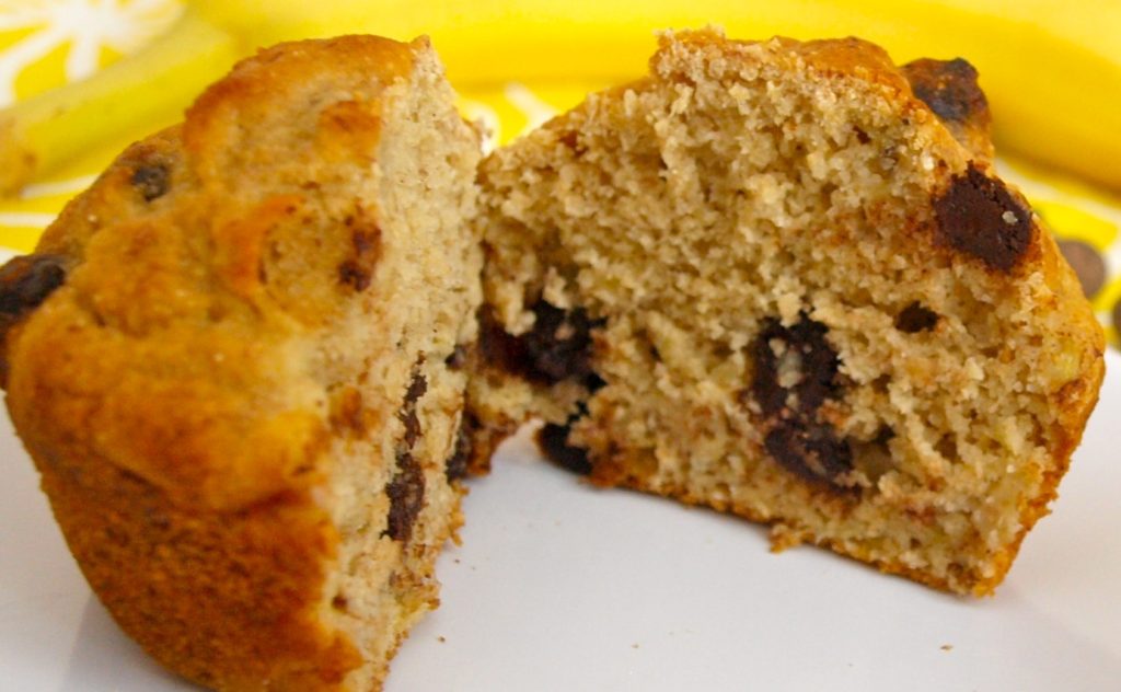 I have a feeling she’s going to be asking for these muffins again soon. The good news is, even with the chocolate chips, these are a healthy muffin. They’re made with whole wheat flour and sweetened with the bananas and agave nectar. I used apple sauce instead of oil, just to keep the calories in check for me and Tim. 😉