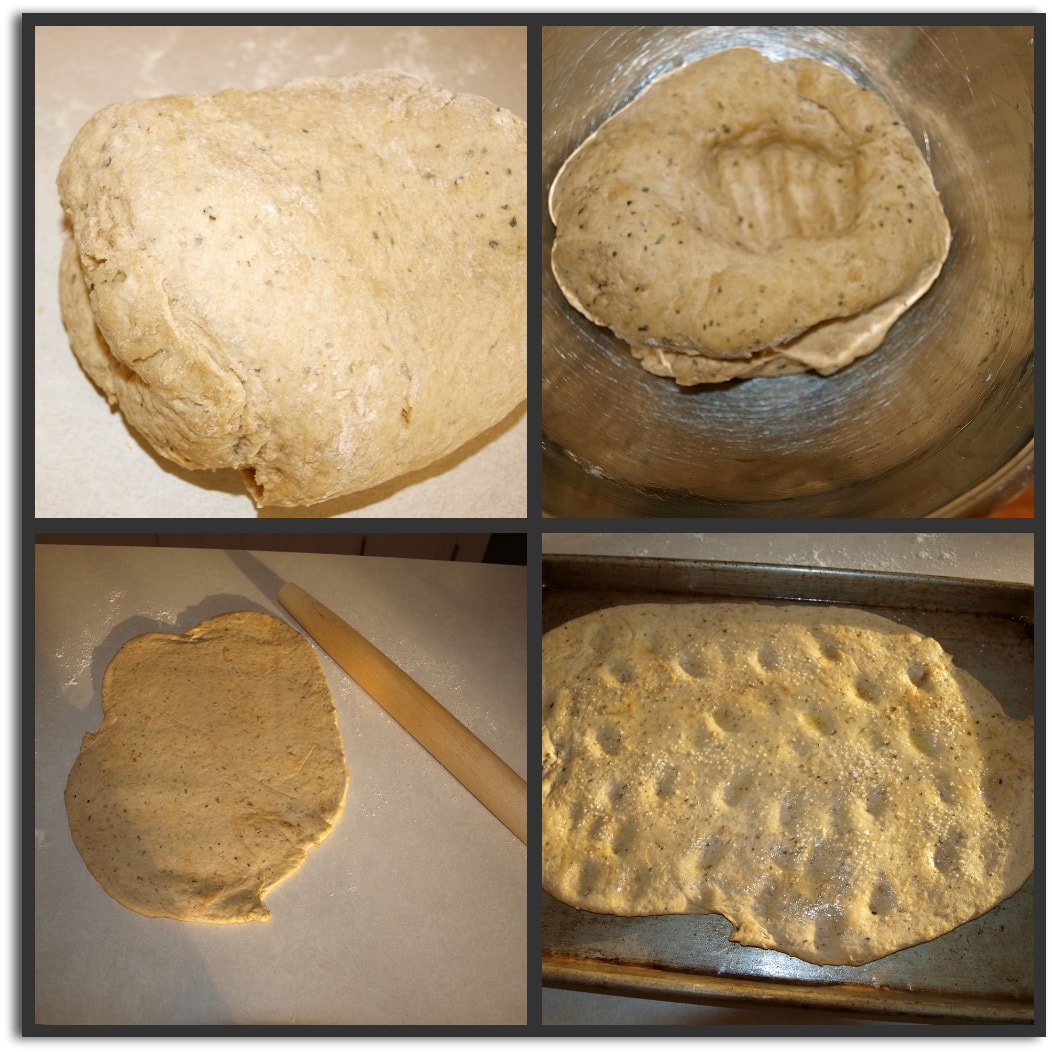 I hoped to be bringing you a recipe for herbed focaccia bread tonight. Whole grain bread baking has been on my list of things I want to get good at–I even took a bread baking class last fall that was supposed to focus on whole grain breads. In reality, the class featured recipes that split white flour and whole wheat flour. Um, I already know how to do that. That’s easy. Making bread taste good and be the right texture with 100% whole grain flours, no white flour (oh yeah, and no sugar), isn’t so easy.