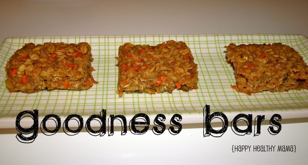 Those Goodness Bars look yummy. I’m always looking for ways to include healthier things in my kids diet, especially my veggie-hating son. And I do resort to sneaky cooking at times! Why yes, the “butter” sauce on their noodles was 75% pureed yellow squash. 🙂 I totally remember those days of “Oh, you are not done teething!” (I recently discovered this Mom’s Guide to be a helpful tooth resource.) Thanks for posting this recipe!! Can’t wait to try it.