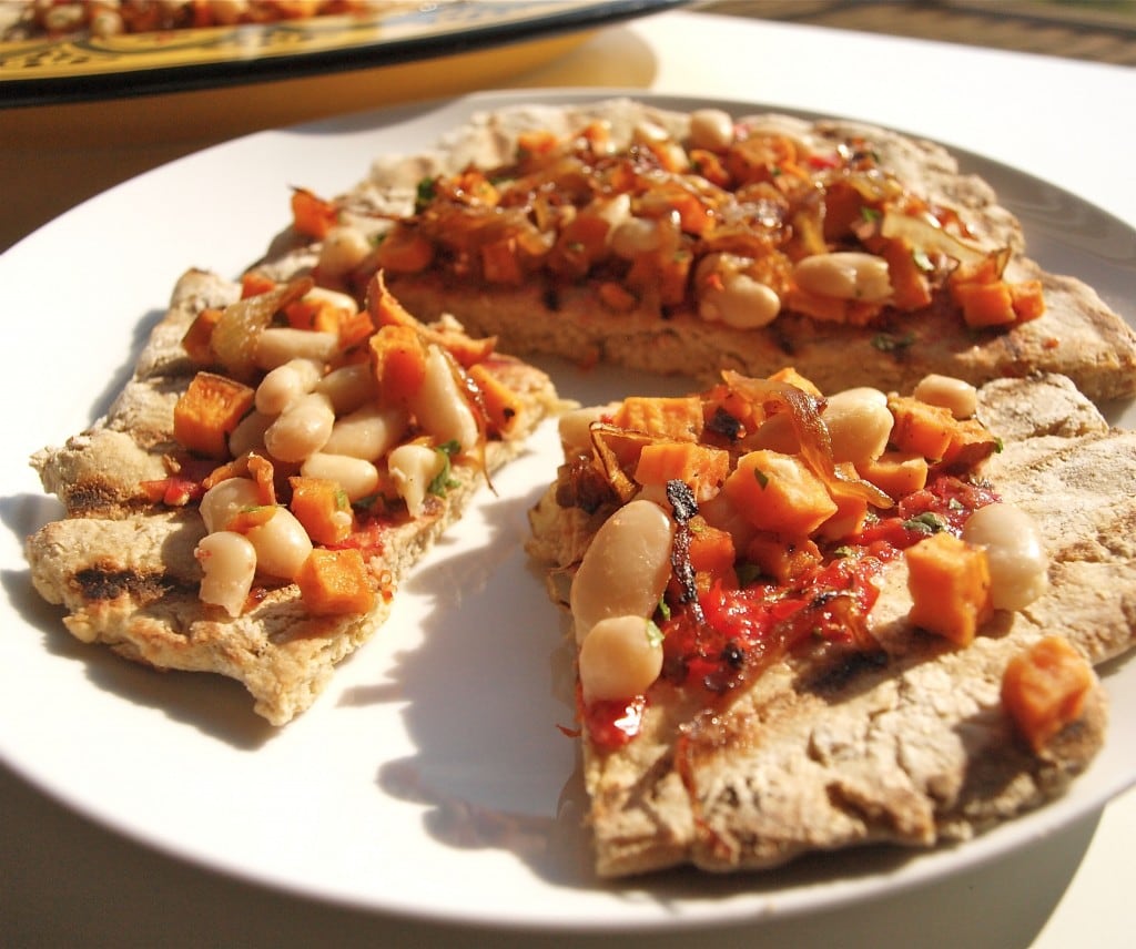Wow! I have never even thought about putting sweet potatoes on pizza….and the combo with white beans must be heavenly!
