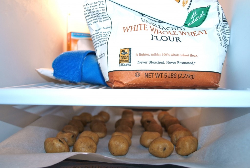 Each ball is just 92 calories (78 if you don’t use the chocolate chips) and has 3 grams of protein. For a normal snack, you’d eat 2-3 balls, depending on your caloric needs, so you’ll get 6-9 grams of protein, a nice amount for a snack. You’ll also get about 2 grams of fiber per ball.