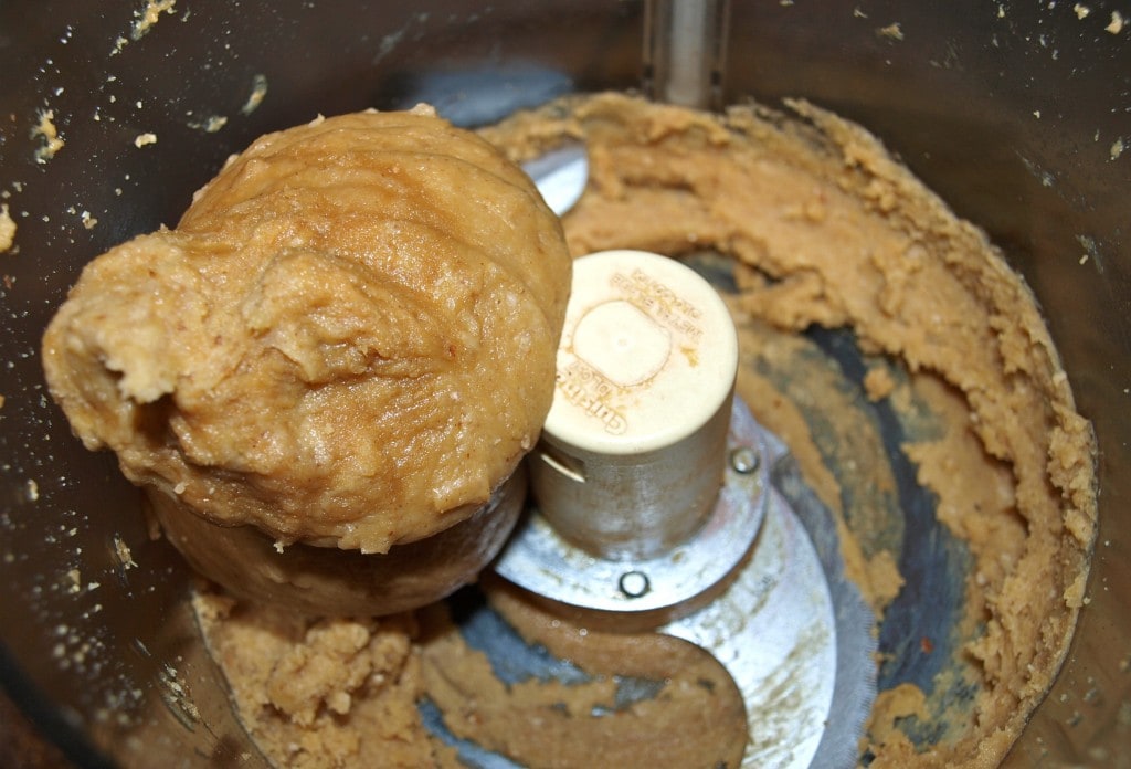 - Next, add the peanut butter, honey, and vanilla and process until you have a smooth mixture.