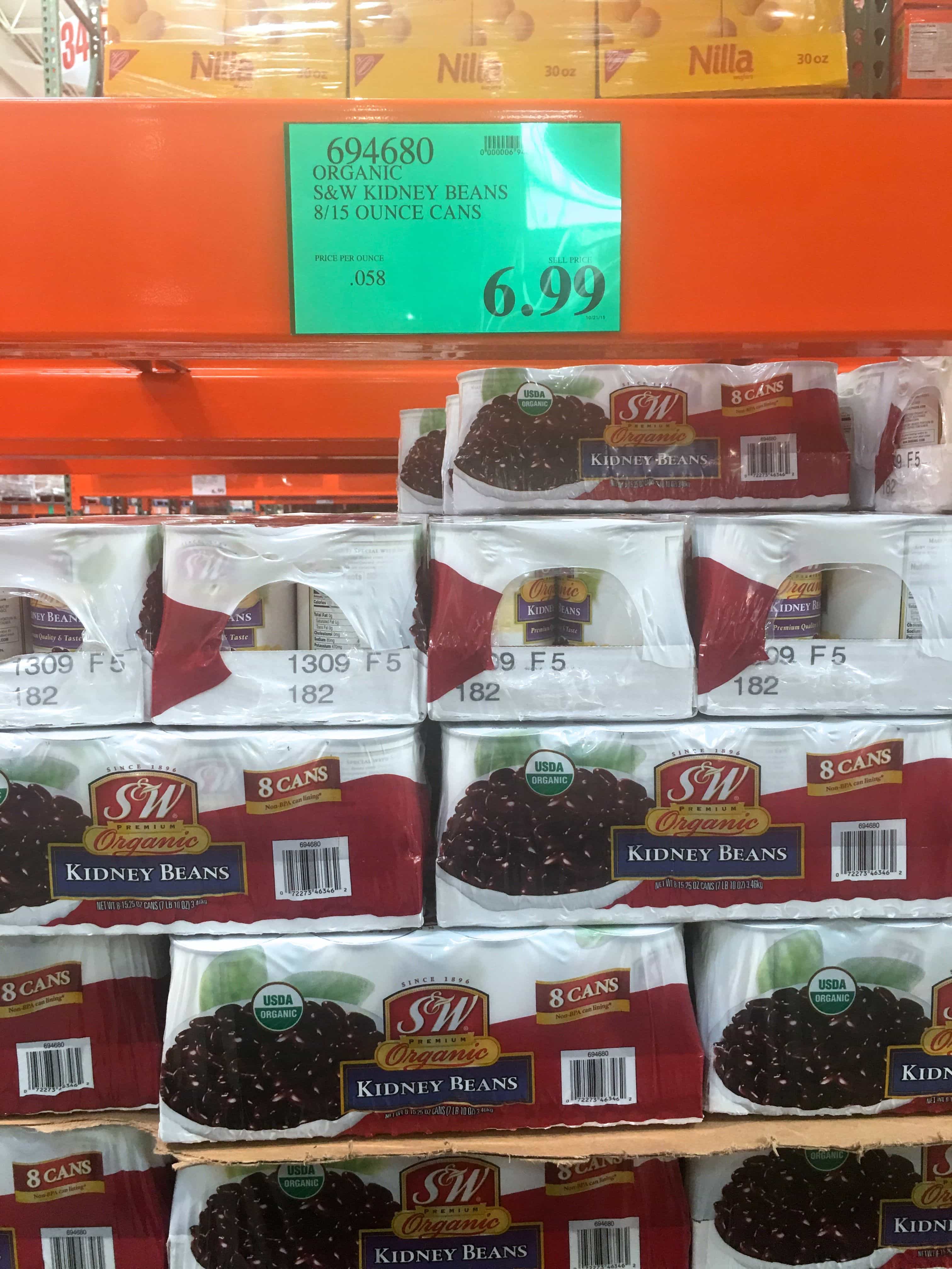 I think I did a jump for joy when I discovered Costco’s beans. They carry organic beans in cans that feature a BPA-free lining. Yessss! And the price? $6.99 for 8 cans equals $.87 a can. I was paying about $2.50+ per can for organic beans in a BPA-free can. This price is incredible and has saved me so much! Talk about cheap, plant-based protein! I always stock up on different beans including black beans, chickpeas, and kidney beans.