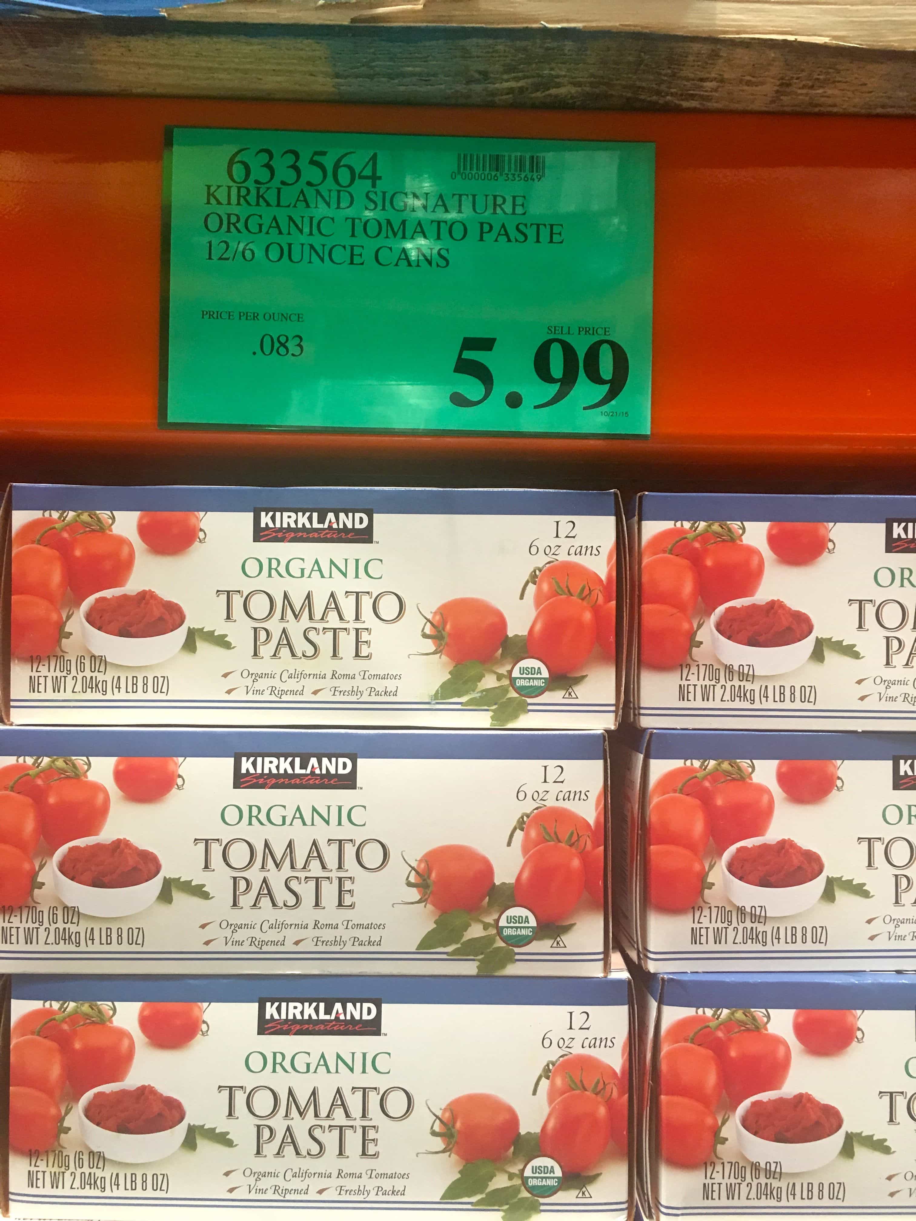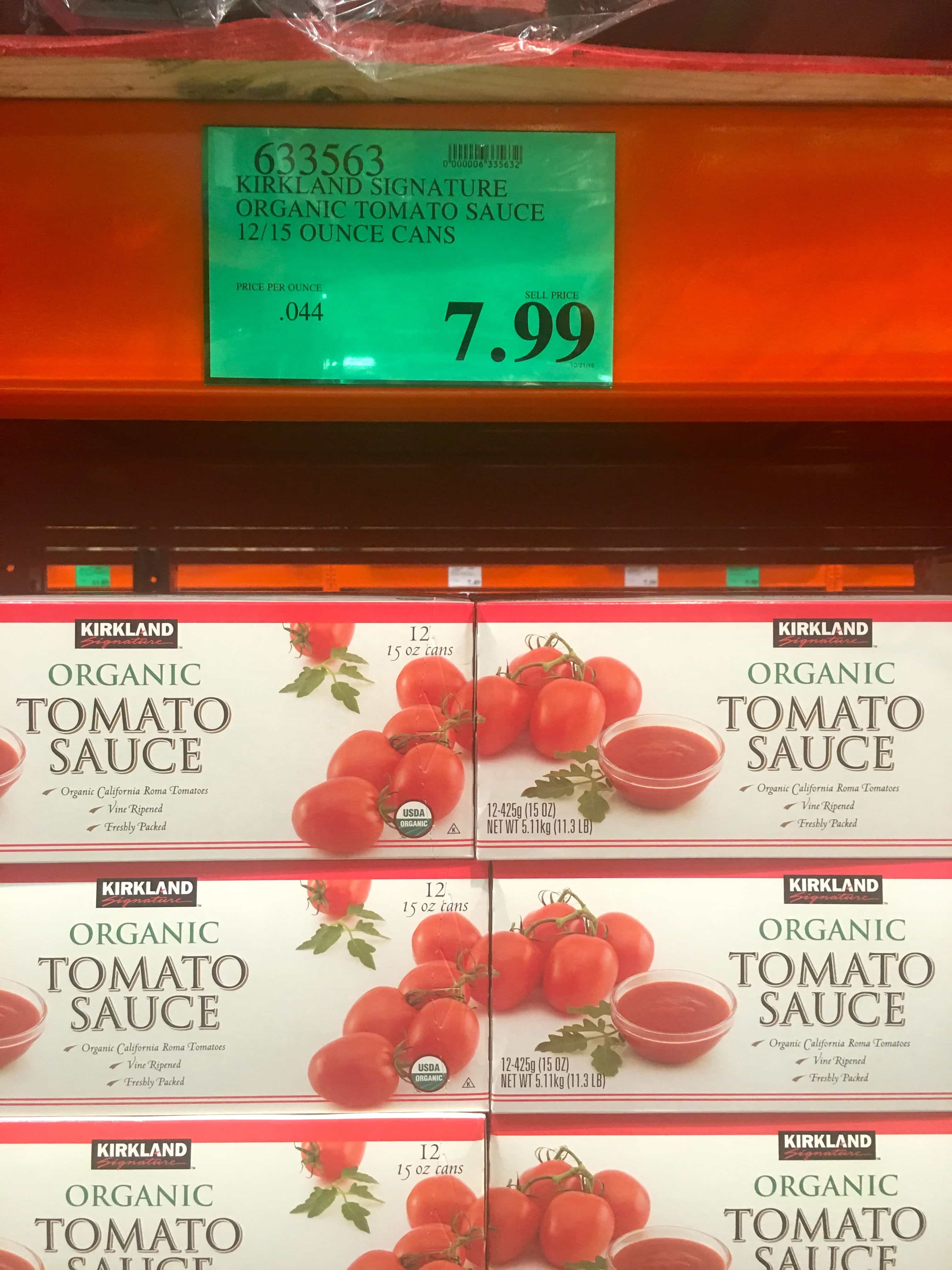Organic Tomato Sauce and Organic Tomato Paste (average price-$7.99 for 12 (15 ounce) cans and $5.99 for 12 (6 ounce) cans)
