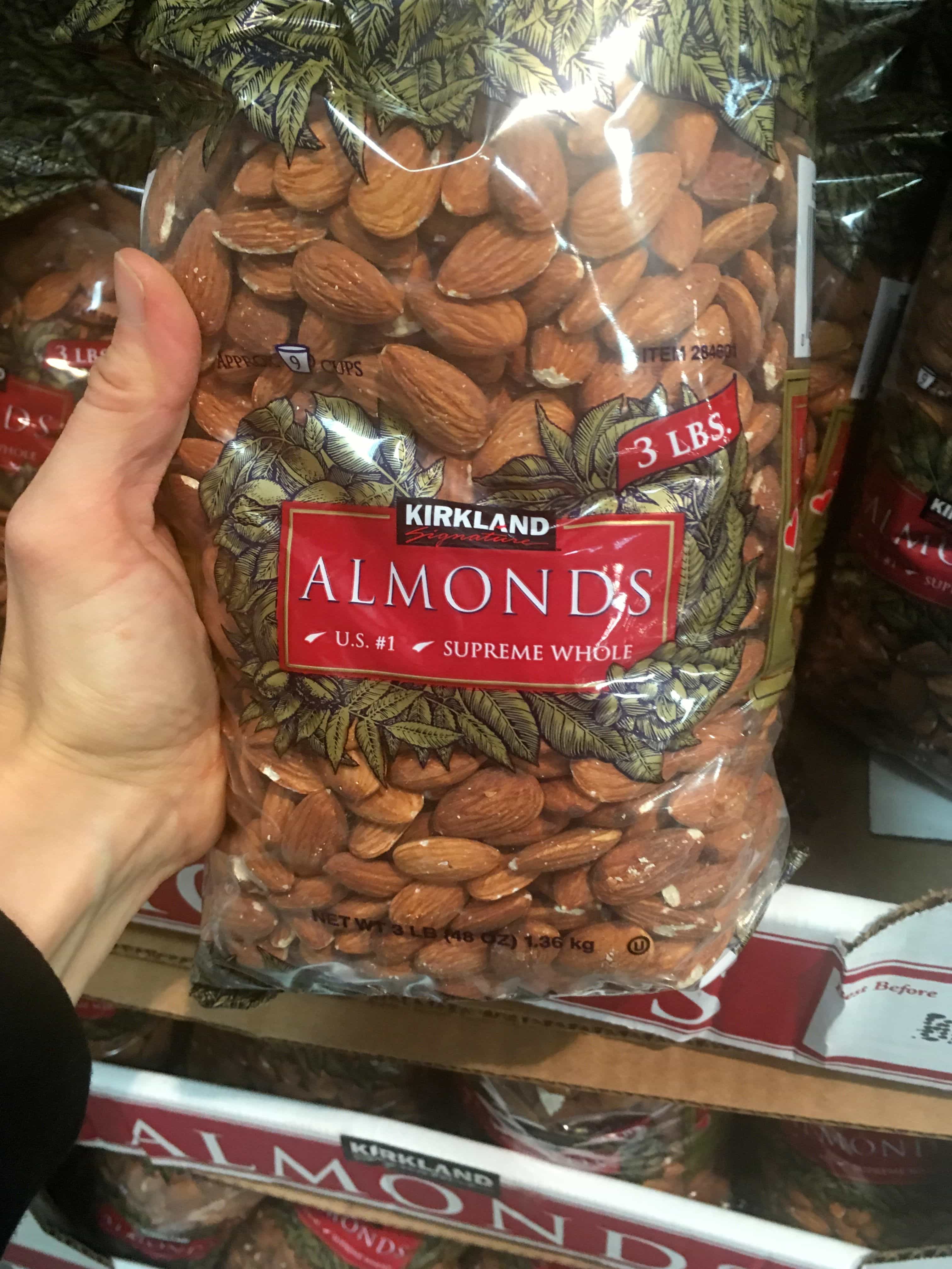 You can save a ton of money buying your nuts at Costco. The almonds pictured are $17.99 for 3 pounds. That’s $5.99 a pound which is cheaper than even Trader Joes. We also get walnuts, cashews, and pistachios here, all at great prices.