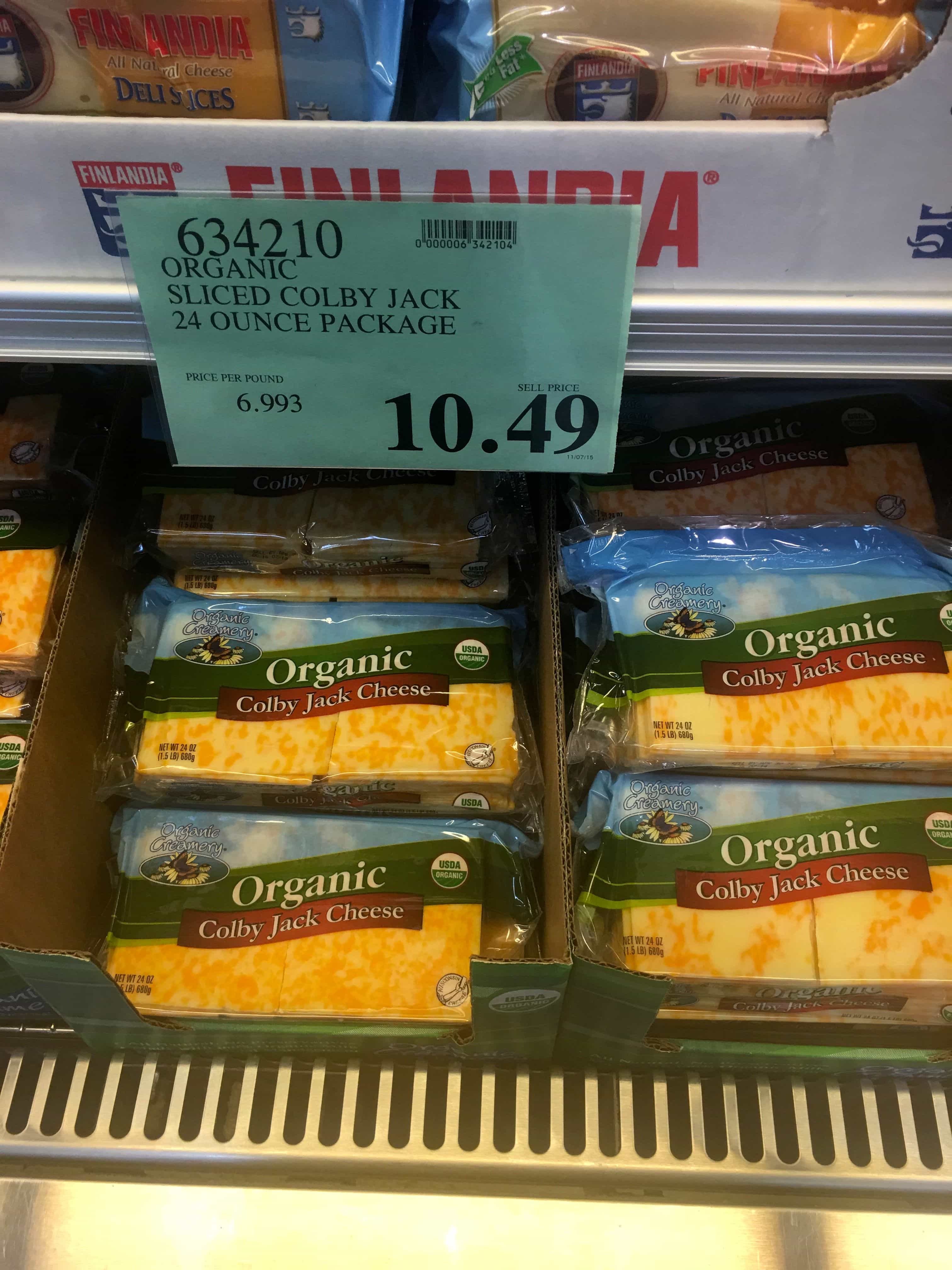 I used to buy these all the time because Luke wanted hummus almost every day. These are the perfect serving size for him and although I don’t *love* that the packaging is plastic, the packaging keeps the hummus fresh and makes it super convenient for us. I don’t buy this as often anymore, but it’s a fantastic price for organic hummus that is made with olive oil. Most store bought hummus is made with soybean oil. Organic Sliced Cheese (average price-$10.49 for 24 ounces)