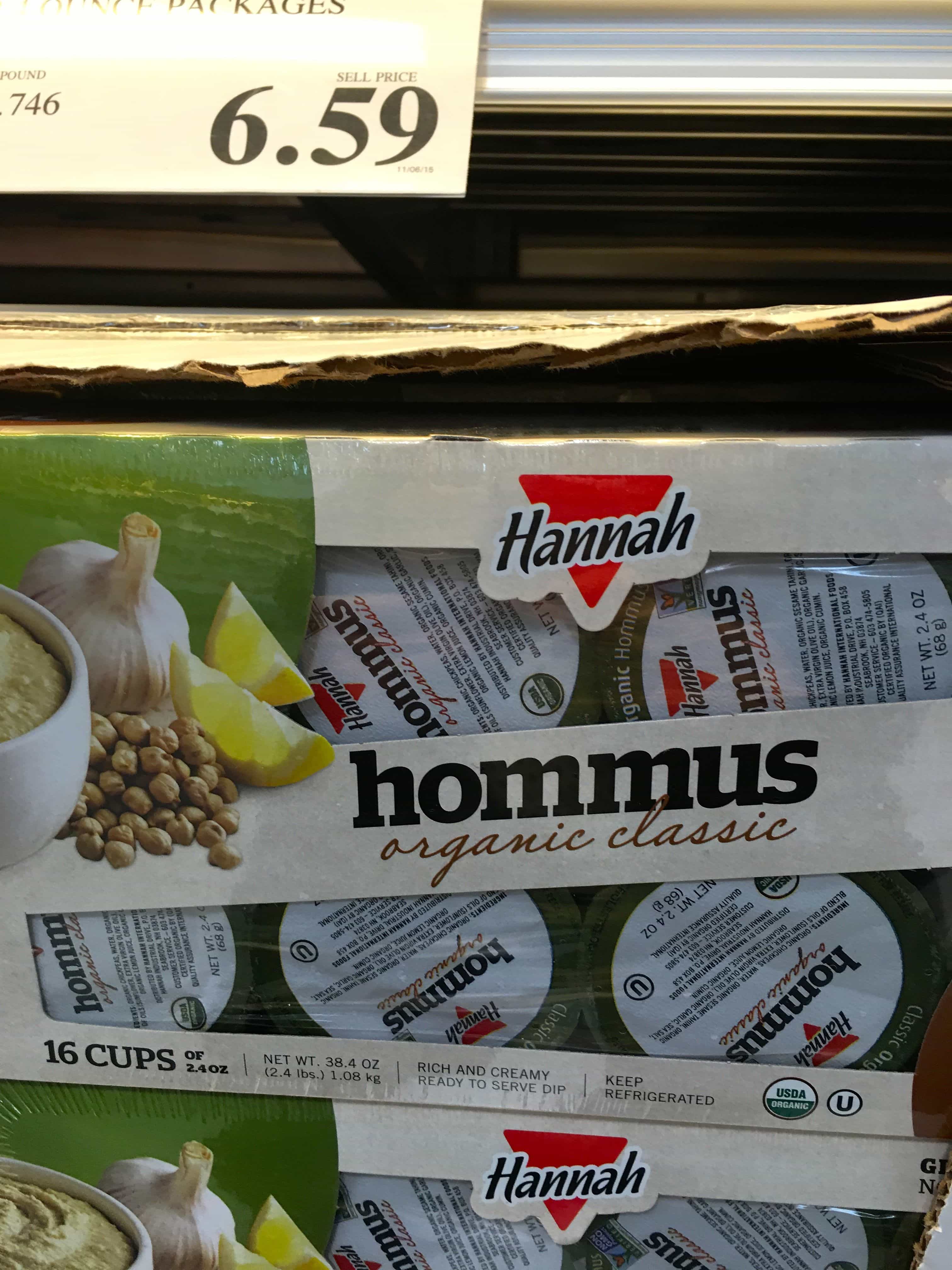 Single Serving Organic Hummus (average price $6.59 for 16 individual cups)