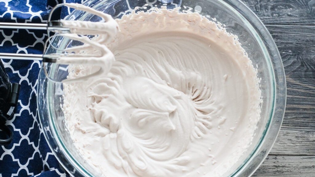 3. Place the heavy cream mixture into a piping bag with a 1M tip. Put it into the freezer while you prepare the rest of the mousse.