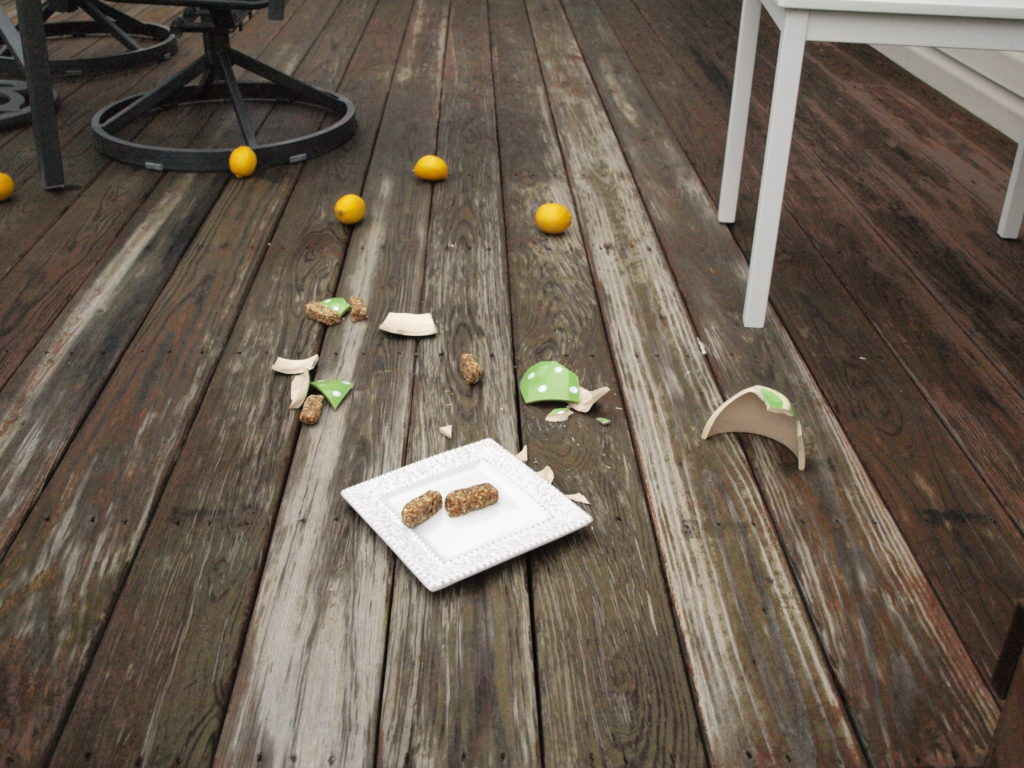 Now for a little peak behind the blog. In order to take advantage of the natural light, I took the pictures for this post outside. It was a grey day and it wasn’t bright enough on the deck, so I brought the little table I was using right down to the grass. When I was finished, I was in a hurry to get inside so I just carried the whole table, with everything on it, up the stairs of the deck. Only I didn’t make it up the stairs. For an athletic person I am exceptionally clumsy and the entire contents of the table ended up on the floor.