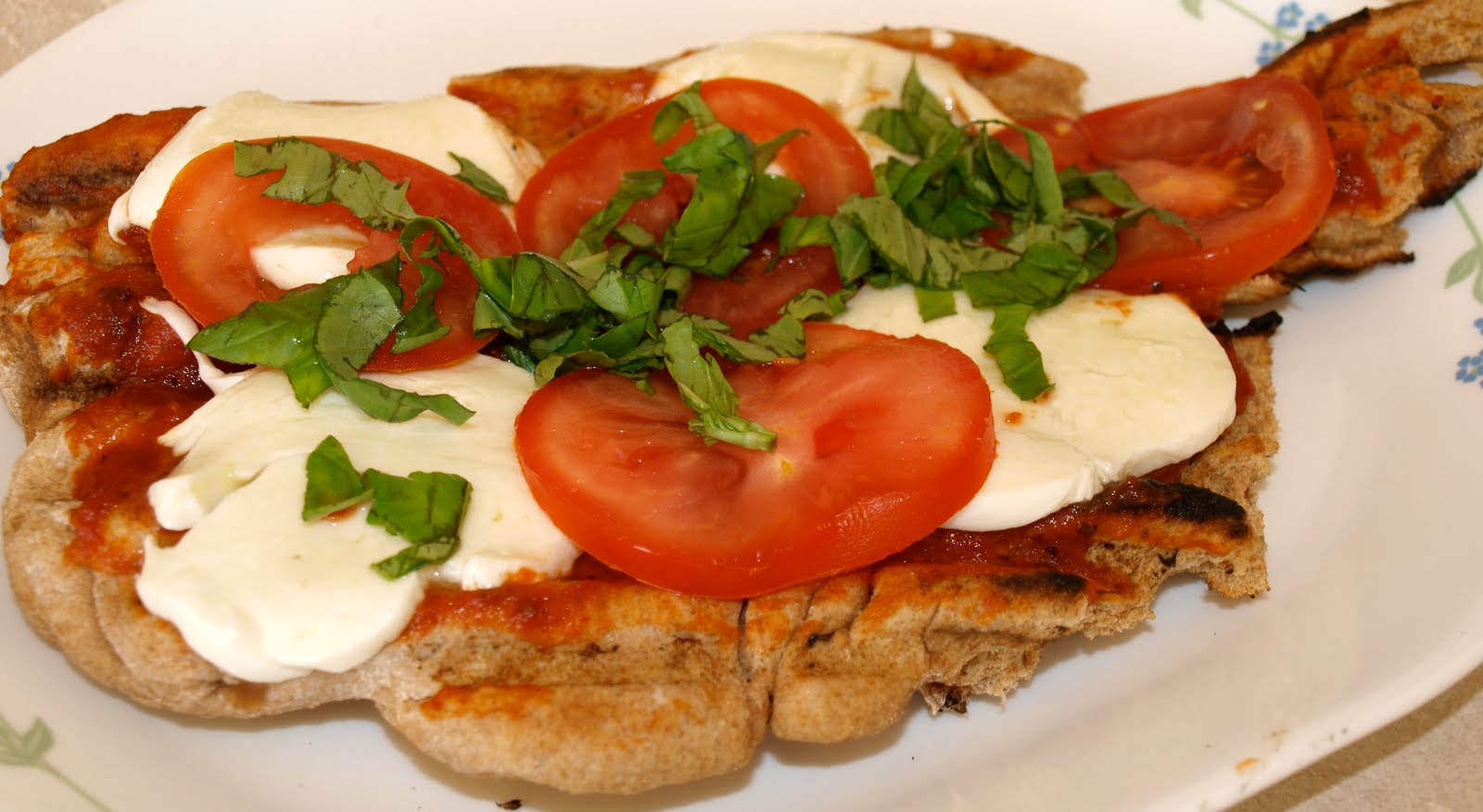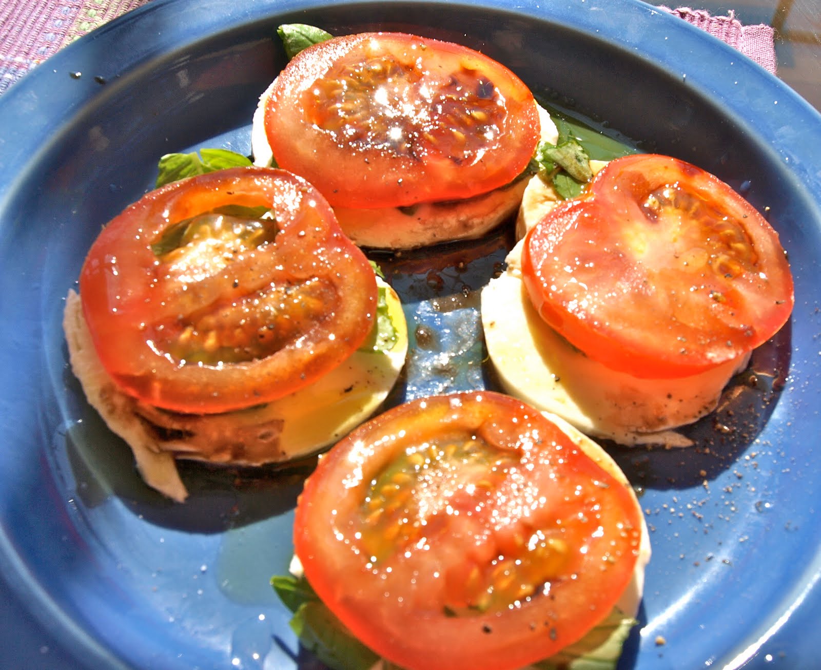 I also had extra tomato, cheese, and basil so I made a caprese salad as well. I layered the tomato, mozzarella cheese slice, and fresh basil, sprinkled with sea salt, freshly ground black pepper, and drizzled it with olive oil and balsamic vinegar.
