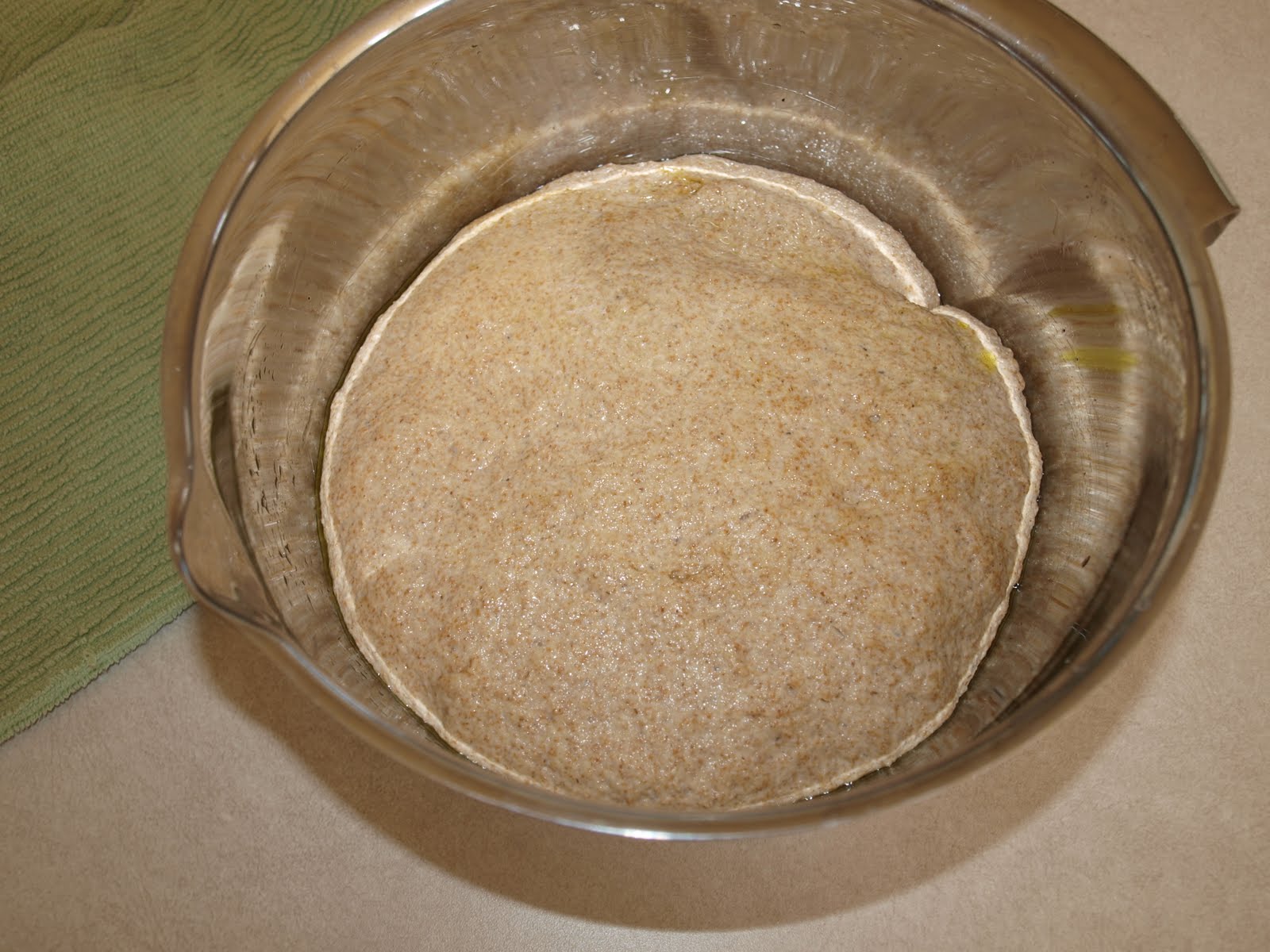 Here is my dough after about an hour. It was doubled in size, but I was very concerned about its sticky appearance.