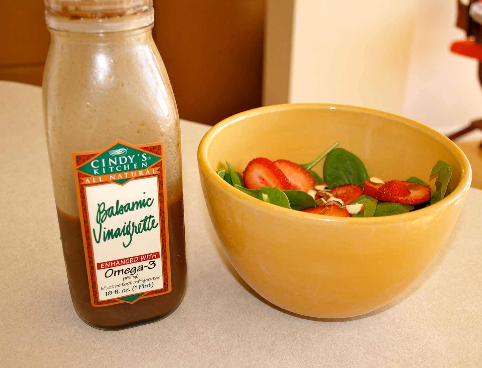 The rest of the meal included a spinach salad with sliced strawberries and sliced almonds. This is my go-to salad. I love fresh spinach and strawberries are the perfect match. Not only do they taste great but because they are a vitamin C source they help our bodies to absorb the iron in the spinach. I used a store-bought balsamic vinaigrette because I was in a hurry. I try to make my own dressing more than not, but when necessary I use a good store-bought variety.