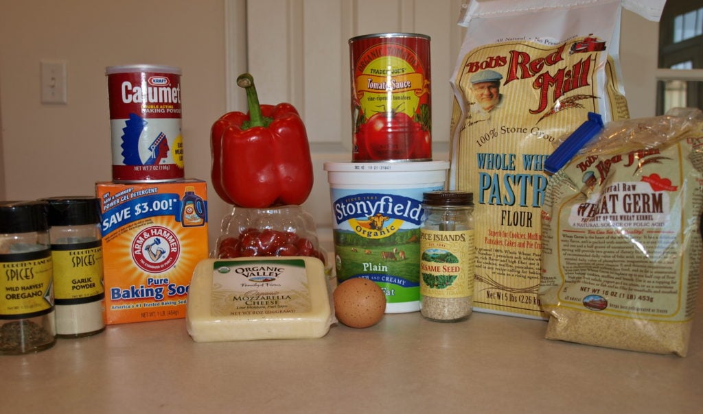 - Preheat the oven to 375 degrees. Butter or oil 12 regular-size muffin cups. {If you use paper liners, oil them! I did not and the muffins stuck to the paper a bit. Didn’t take away from their deliciousness, but it was really annoying.} In a medium bowl, whisk together the egg, tomato sauce, and yogurt. Add the cheese and spices and stir. In a separate bowl, mix together the flour, wheat germ, baking powder and baking soda. Combine the wet and dry ingredients and mix until there are no dry patches.