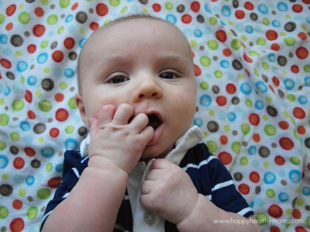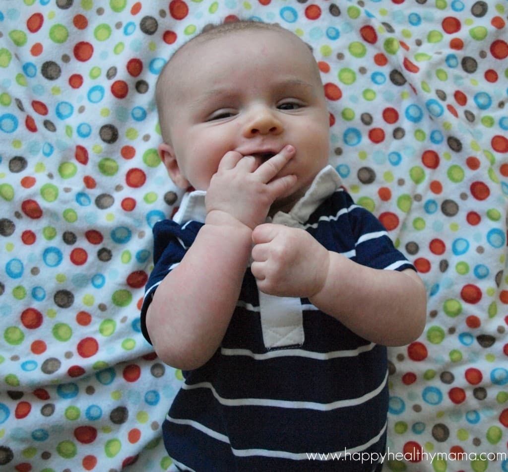 If he isn’t staring at his hands, he’s putting them in his mouth. Most of his awake time is spent with a focus on those hands.