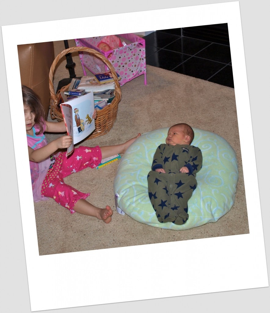 Meghan adores Luke. She loves it when “his eyes are open” and lays by him, reads to him, and kisses him. She has a lot of trouble, however, sharing me. She doesn’t like it when my attention has to be on Luke.
