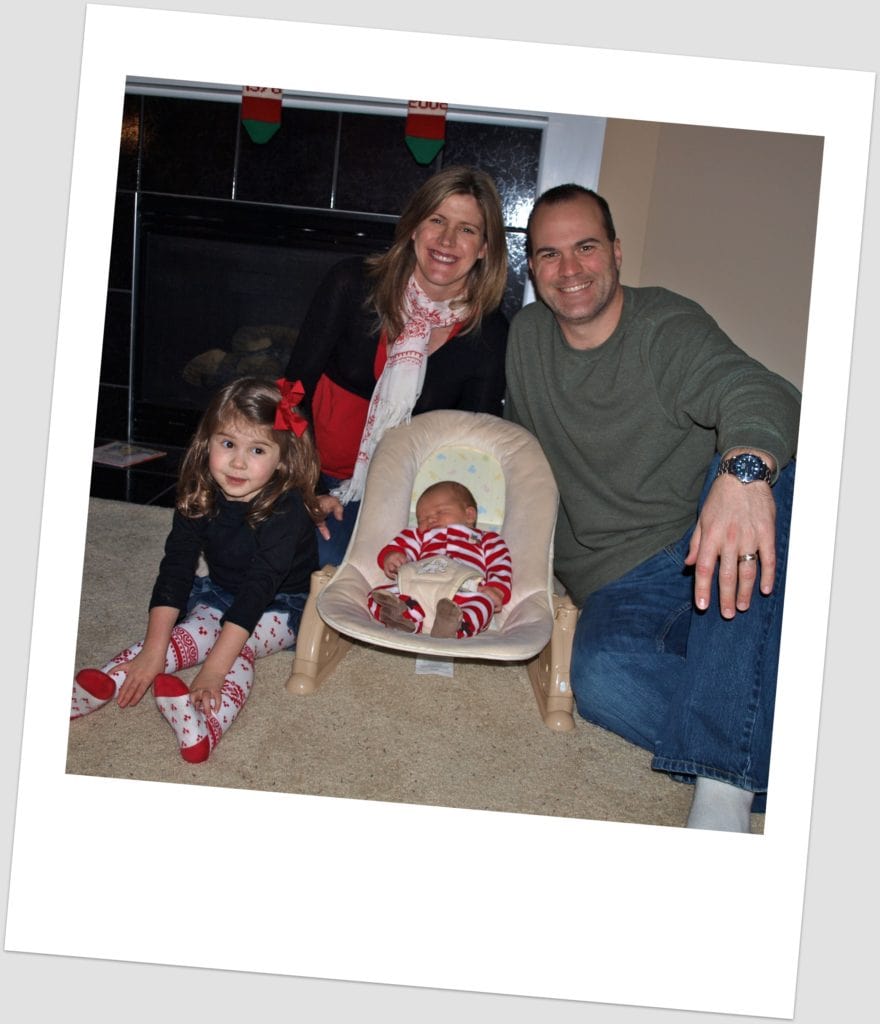 Despite my state of sleep deprivation, I’m feeling great. I have another two weeks until my postpartum checkup, but I’m really anxious to start exercising again. Mostly I’m anxious to be able to wear and feel good in my normal clothes again. I have about 10 pounds to go before I’m back at my pre-pregnancy weight. I fit into a few pairs of my jeans, but the tops is where I’m having the most trouble. My stomach still sticks out and I don’t feel comfortable in very many of my shirts. I searched through all of my pictures to find one of me, and this one from Christmas (1 week postpartum) was all I could find. Guess I need to start giving Tim the camera more.