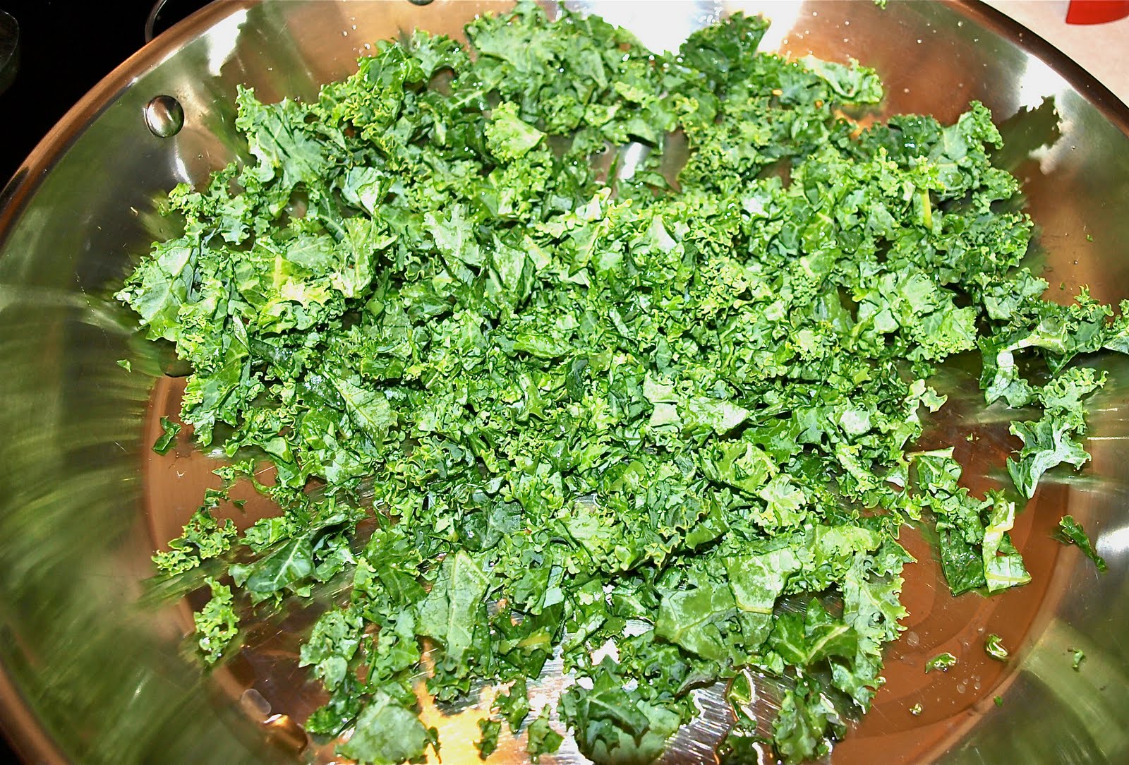 - Heat a small amount of oil in a saute pan and add the kale. Once the kale starts to wilt, add the beans and heat through.