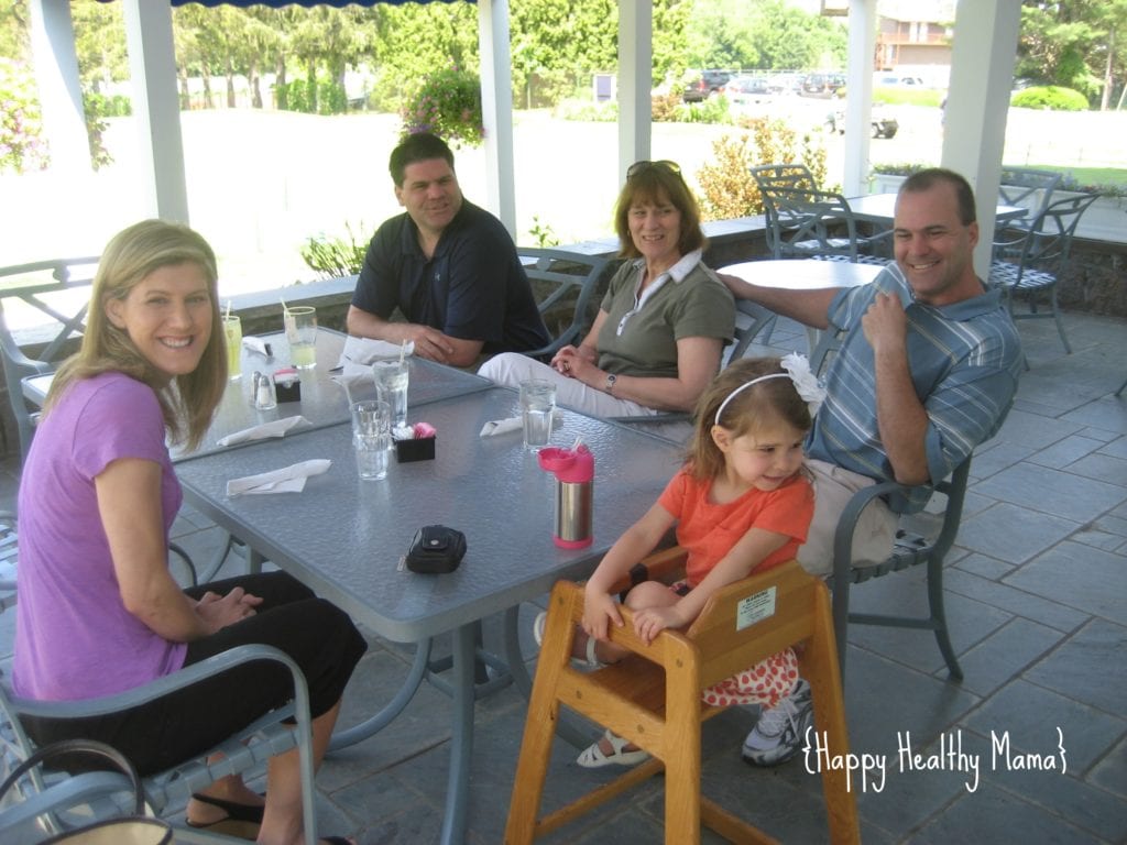 Today we took a ride over to Poppy’s golf club for lunch. Meghan feels like such a big girl sitting forward.