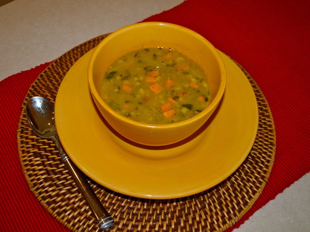 Before I get to the recipe, let me tell you a little bit about the mighty split pea. I will neglect this little guy no longer. He will somehow make his way into my life more because he really does pack a big nutritional punch. For starters, split peas are a good source of protein. This is excellent since I didn’t include ham in my split pea soup since I do not eat pigs. Ever. The split pea is also high in fiber, has four important minerals, two B-vitamins, and phytonutrients. So if you are anything like me and thought you’d judge Split Pea Soup by its ho-hum name, it’s time you put aside your prejudices and give it a try.