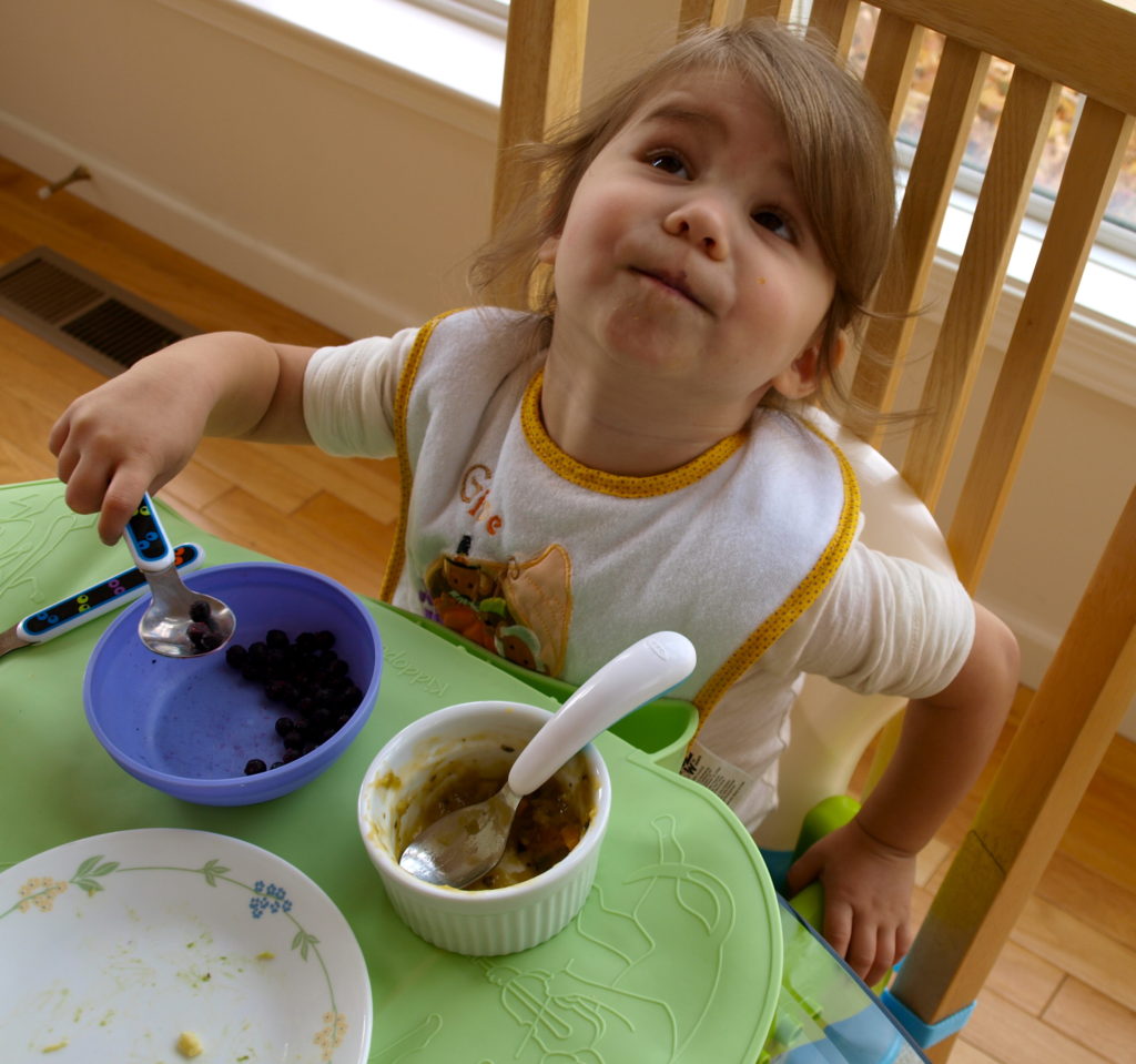 Here is Meghan enjoying her lunch. I told her to “look up” because I could see her face, so she did. 🙂
