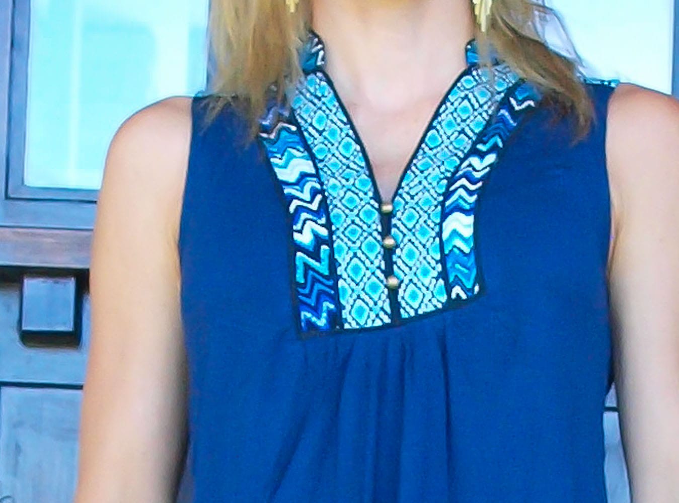 This is a beautiful top with colors that I love. Â It was the perfect material–casual enough that I could wear it everyday for my stay-at-home mom gig. Â I love clothes that make me feel cute, yet are comfortable enough to play with the kids in. Â This top worked perfectly for that.Â
