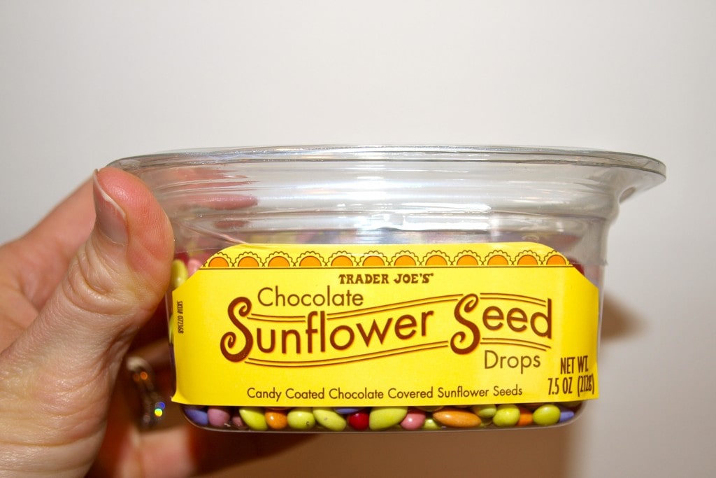 I LOVE TJ’s chocolate covered sunflower seeds. They are so tasty and I love that they are colored naturally. Pretty cool, huh? Great cookies!!