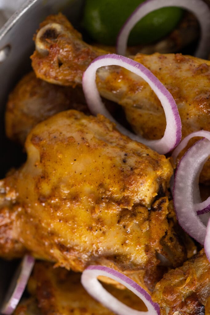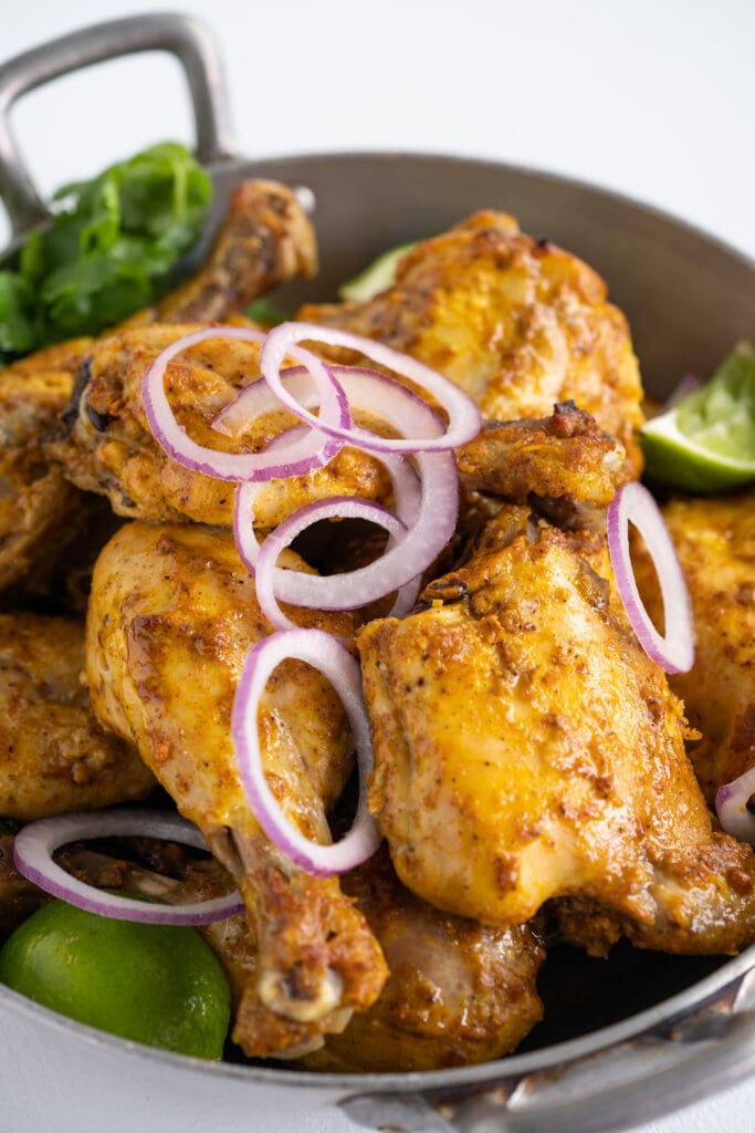 - Garnishes – For garnishing tandoori chicken, I like to use red onions, cilantro, and lime wedges. You can use as much or as little as you like.