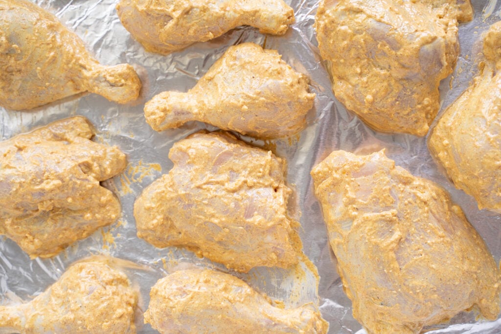 - 4 pounds chicken drumsticks and thighs, bone-in and skinless