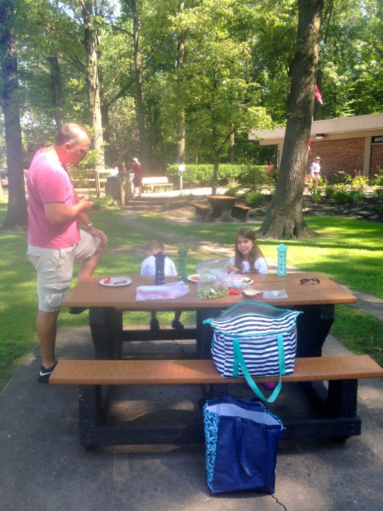 Since our road trips are mostly in the summer, we find a nice rest area with picnic tables to have our lunch.
