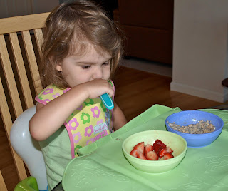 Notice the bowl of strawberries? I always offer something I know she’ll like!
