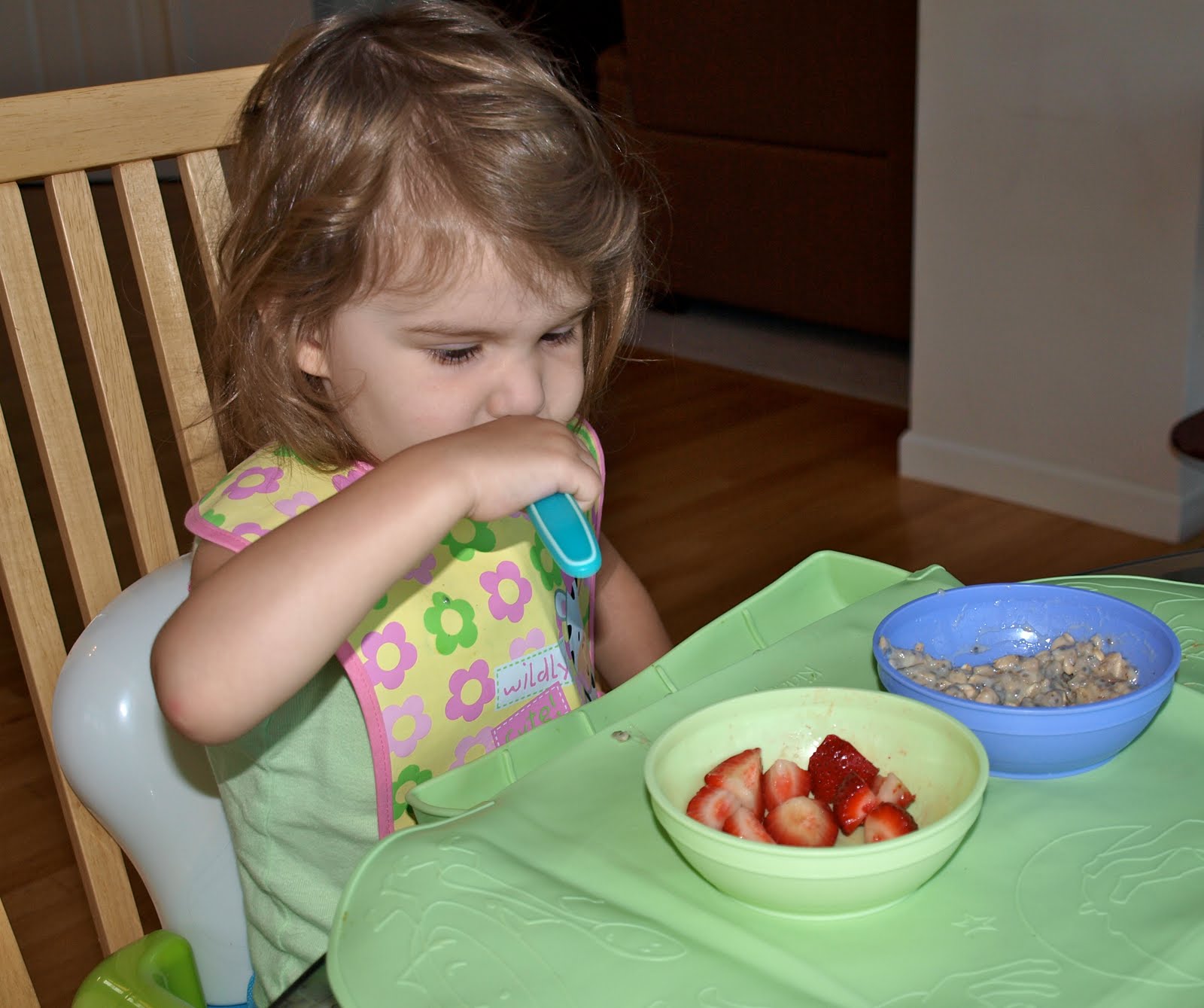 …on foods you don’t think your toddler likes. It’s been a gratifying week. Toddlers have weird taste buds and weird moods to go along with those strange taste buds, but you never know what they will fancy one day to the next. So even if you think your little one definitely will not like, or has even refused more than once, a certain food, don’t give up–keep offering. Meghan ate devoured two different foods this week that I didn’t think she’d ever really love.
