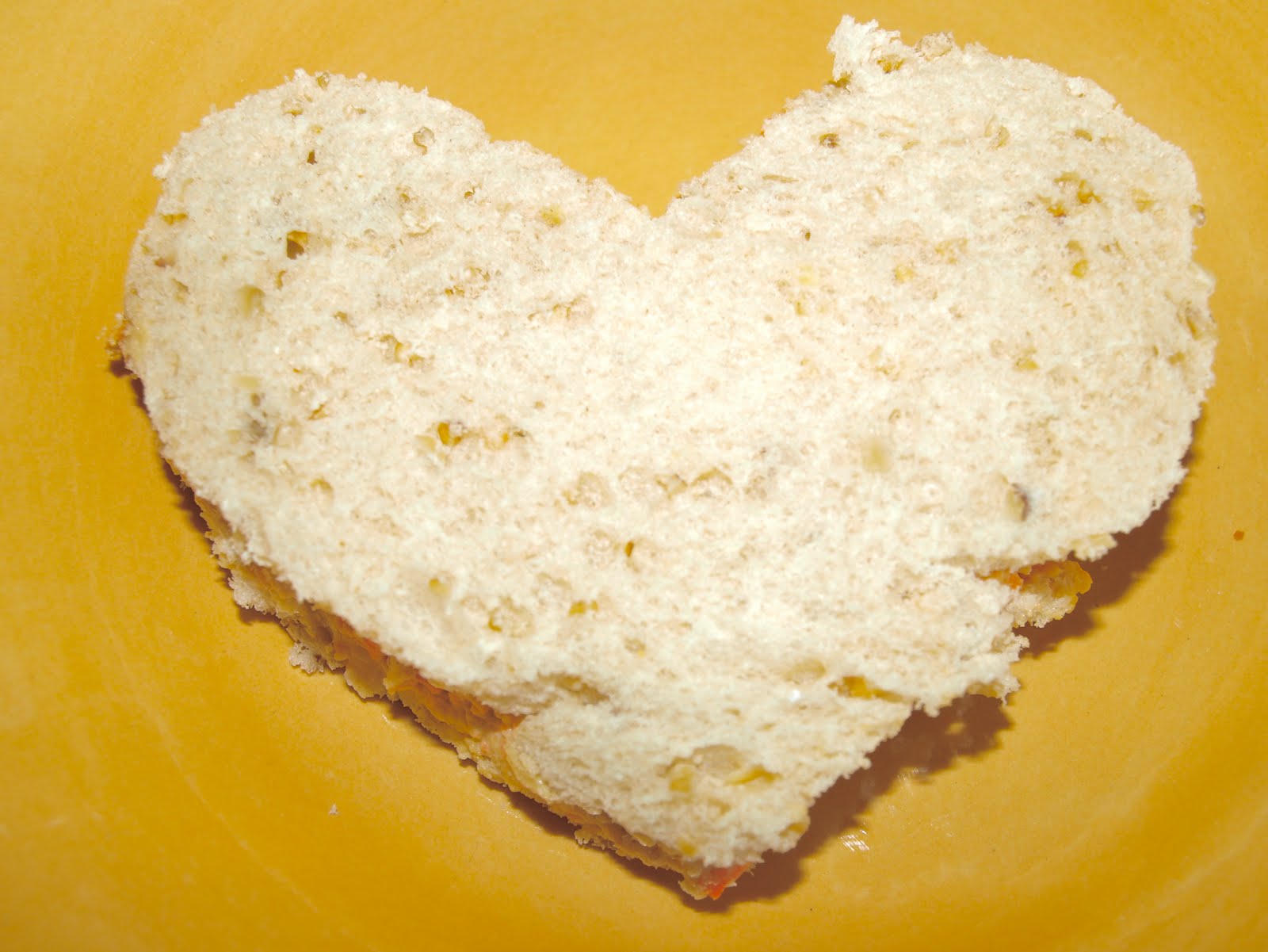 The next day I made a heart-shaped sandwich for her using similar ingredients. (Can you tell I was trying to use up certain things from the fridge?) Such an easy way to make meal time a little more fun. Cut the sandwich into whatever shape you think your toddler will appreciate.