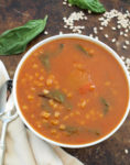 Tomato Barley Soup with baby greens. Healthy comfort food at its best!