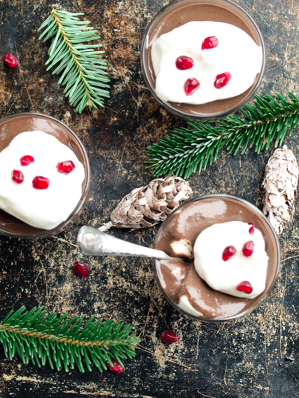 Because it’s December, and because I promised you healthy Christmas treats, I gave this vegan chocolate pudding a holiday spin.